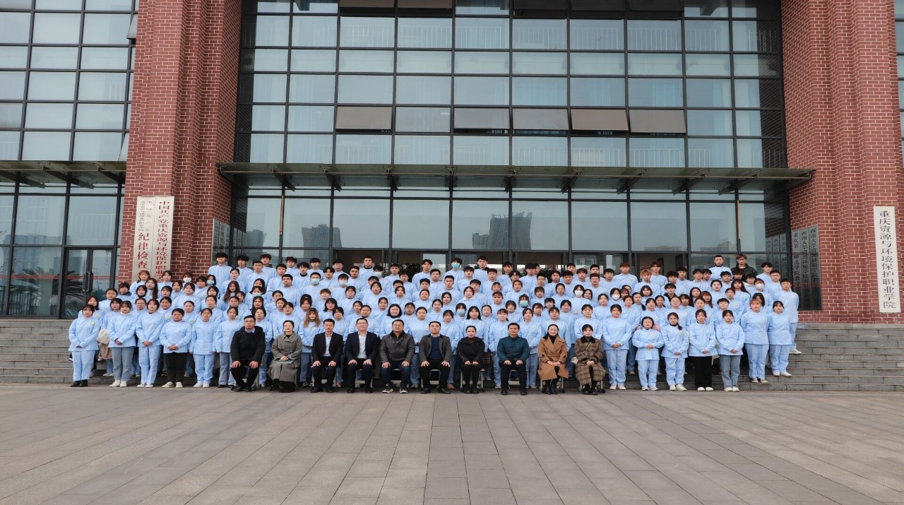 岗:依据岗位需求,让学生走近岗位,切实掌握岗位所要求能力,进而提高教学质量,为职业岗位提供更多优秀人才。健康类专业举办了2021级新生授服暨拜师仪式,邀请了医校企合作单位的重庆市大足区食品药品协会部长唐全东、重庆市大足区郭昌毕医院护理部主任李苗、重庆宏善实业集团有限公司大足区总经理罗莎、重庆市大足区凯汀药房总经理何兴旺、兼职教师代表谢德云和我院的各级领导共同为2021级新生授服。
