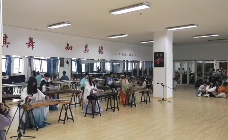 期末考试音乐汇演从古筝弹奏-一《新年好》拉开序幕。