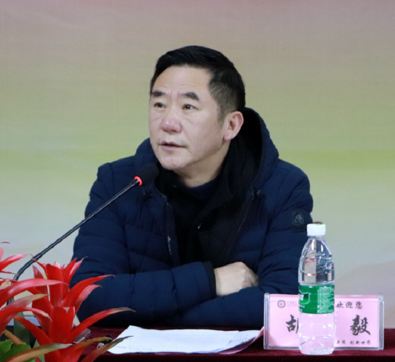 胡毅董事长对学校的发展和建设作了重点发言,他指出,在新的一年里,我们要强校,进一步提升内涵,提高质量,加强管理,规范办学,加大对基础设施的建设,完善教职员工的生活成长环境,努力推动学校高质量发展。