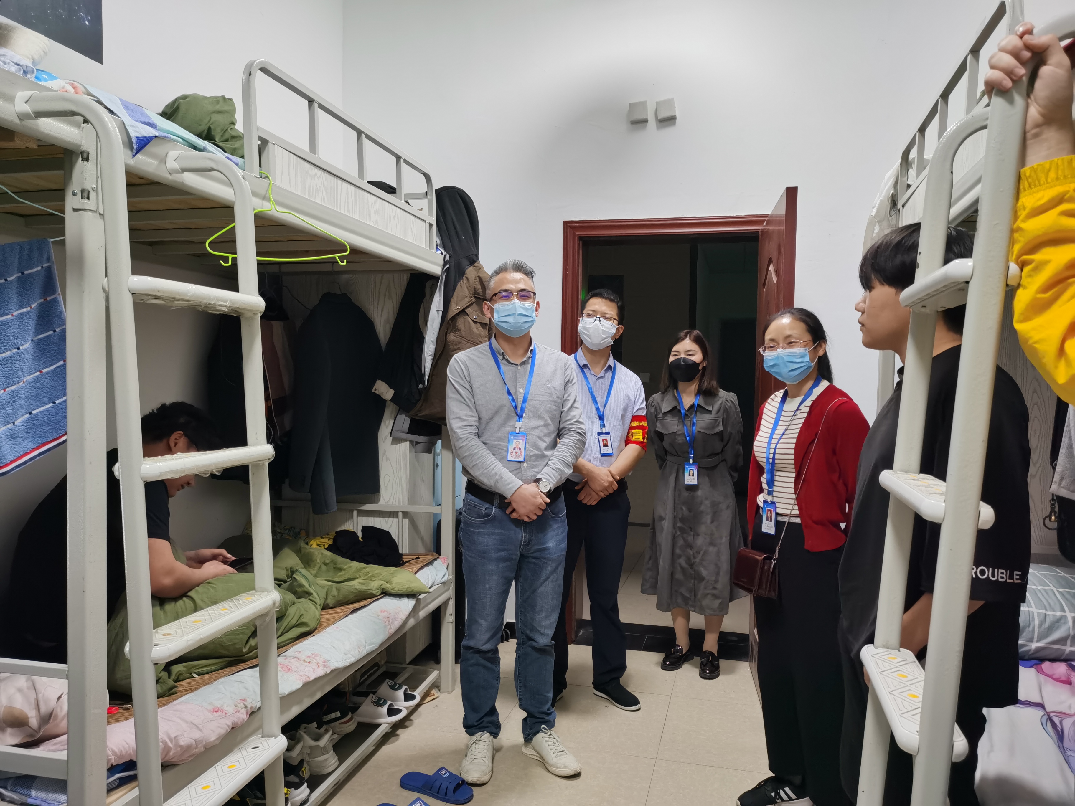针对当前严峻复杂的疫情防控形势,为进一步织密扎牢疫情防控网,守护全体师生的生命安全和身体健康,3月17日晚,常务副校长李朝国(主持学校工作)带领相关部门负责人及辅导员深入学生宿舍,与学生亲切交谈,了解学生状态,为学生送去关心和问候。