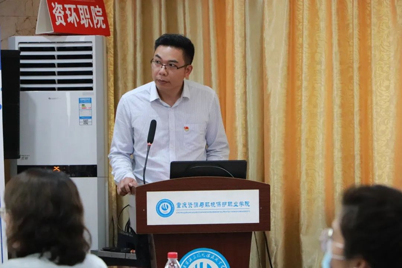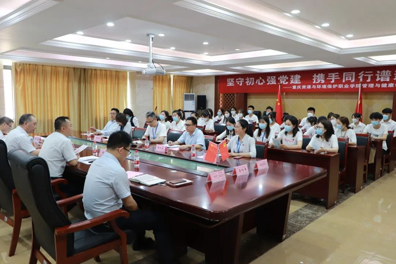 重庆资源与环境保护职业学院常务副校长、纪委书记李朝国致辞,他代表学校党委对周世伦行长一行人表示热烈的欢迎,介绍了我校党组织机构的成立及发展史,对我校全面贯彻党的教育方针,学校在党建引领下建设规范组织、建强先进队伍、健全运行制度、提升教育教学等方面的具体举措。李校长希望通过行校党建联建,能进一步提升党建工作的理论水平,实现新跨越;也希望本次党建联建能够成为提升学校党建工作新思路、新方法的重要途径,有助于双方充分发挥自身的优势,为提高双方的党建工作和管理服务水平,丰富党建内涵、创新党建活动方式提供一个全新的平台。