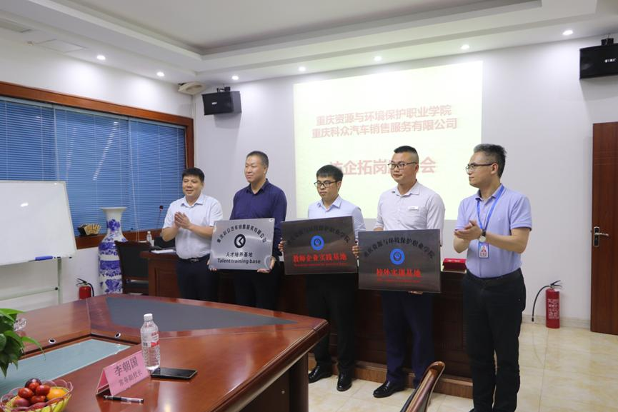 签约仪式结束后,举行了授牌仪式,重庆科众汽车销售有限公司授予我校为“人才培养基地”,我校授予重庆科众汽车销售有限公司为“学生校企实训基地”、“教师企业实践基地”。
