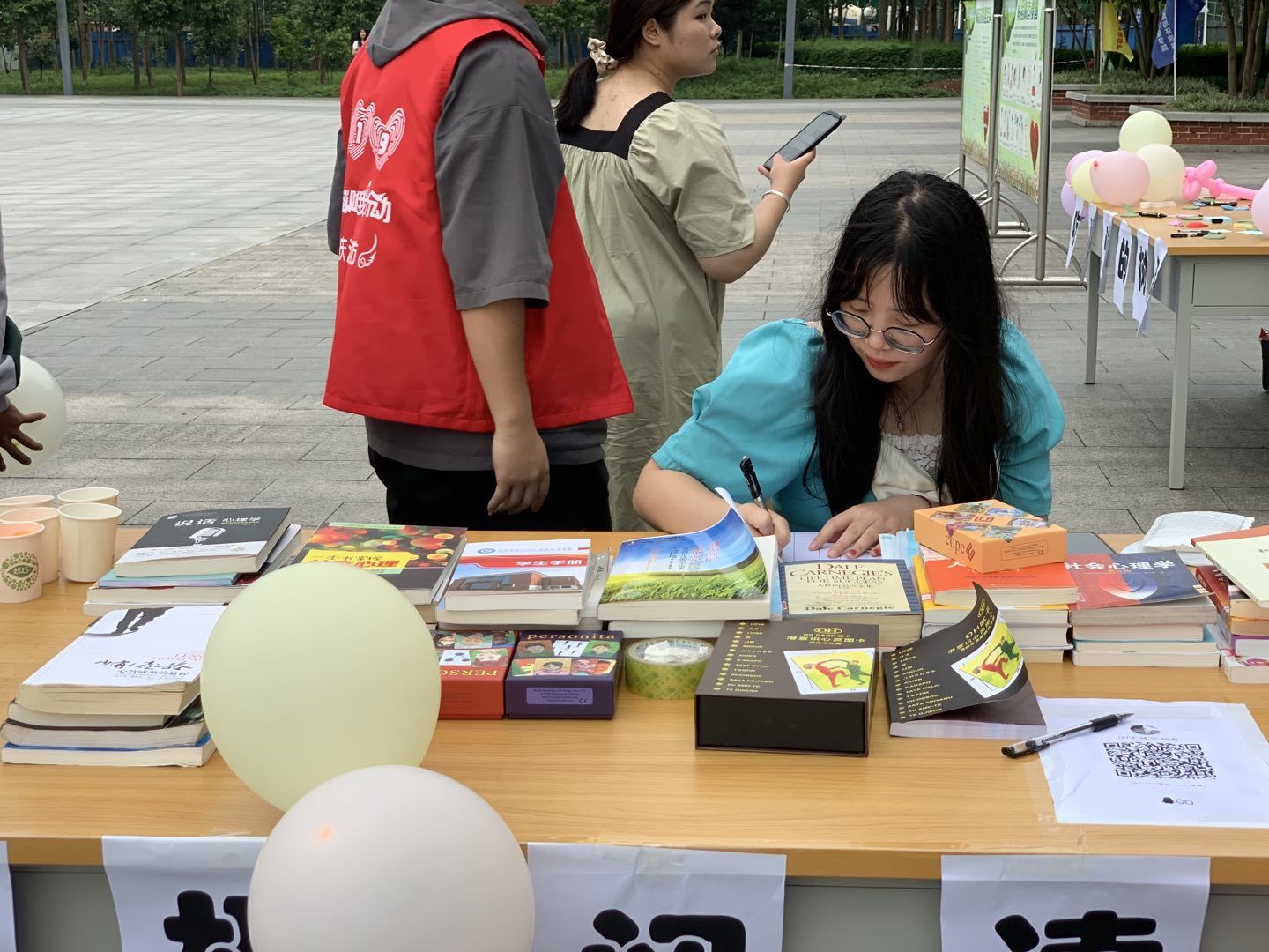 心理协会的干部认真登记同学们对心理书籍的借阅情况