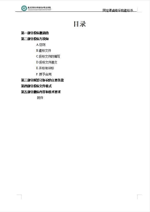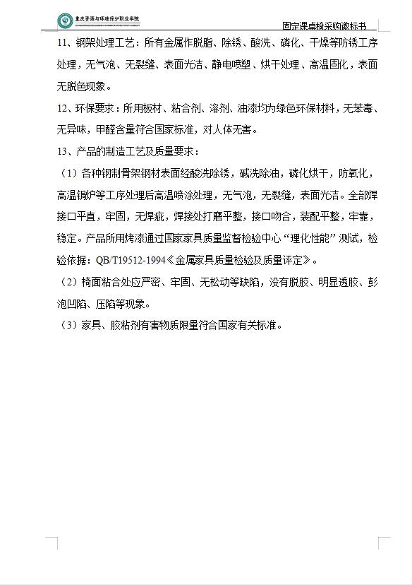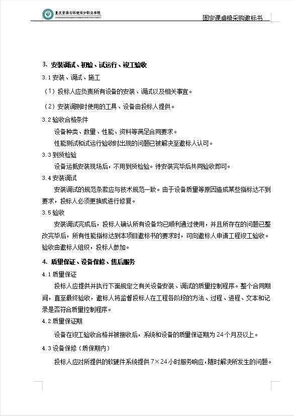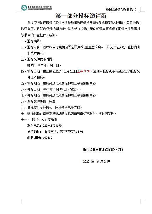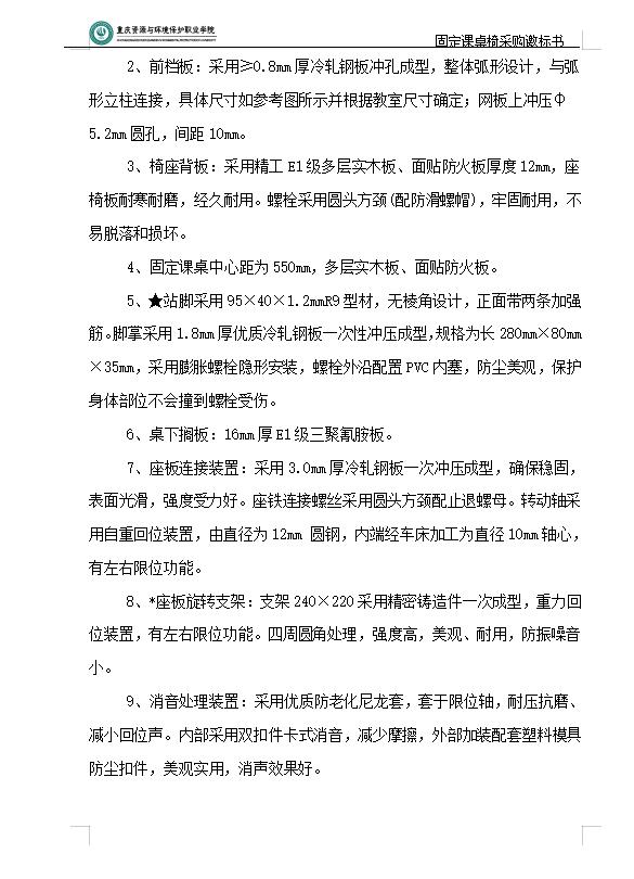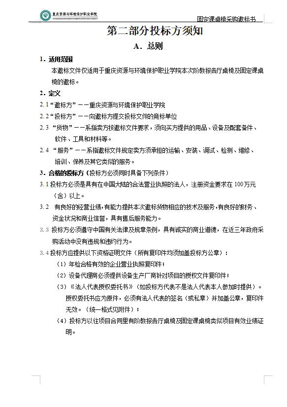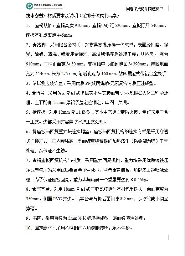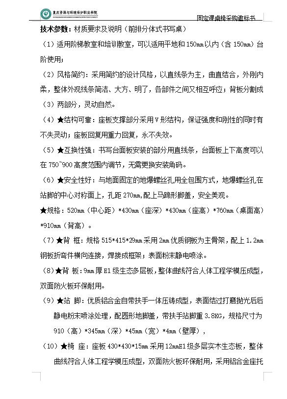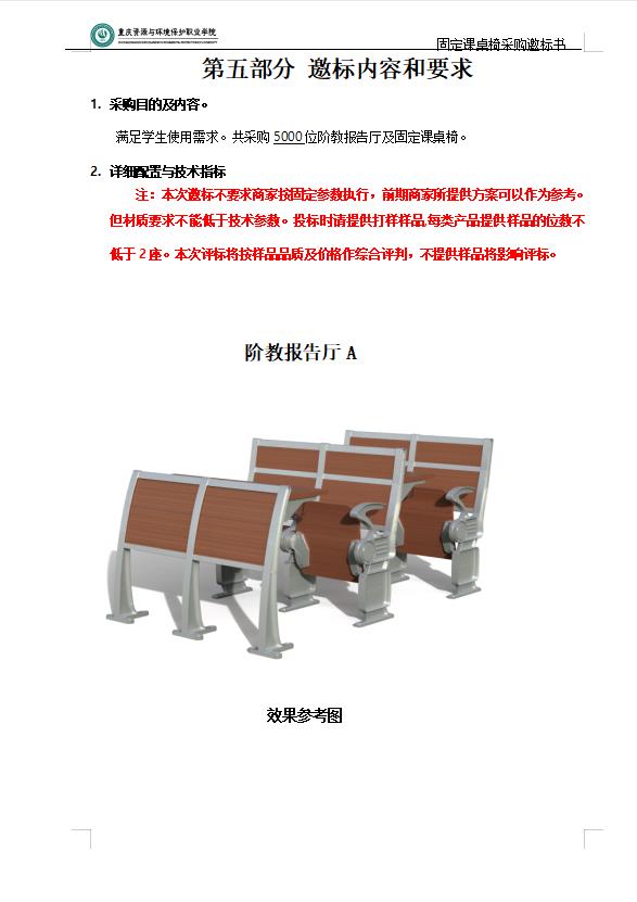阶教报告厅桌椅及固定课桌椅采购邀标书