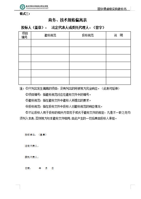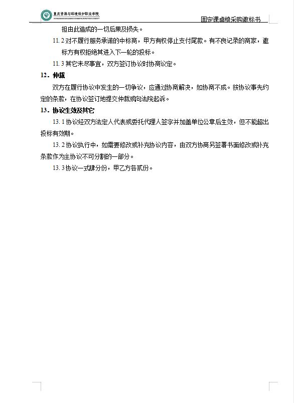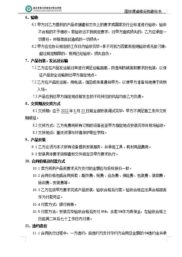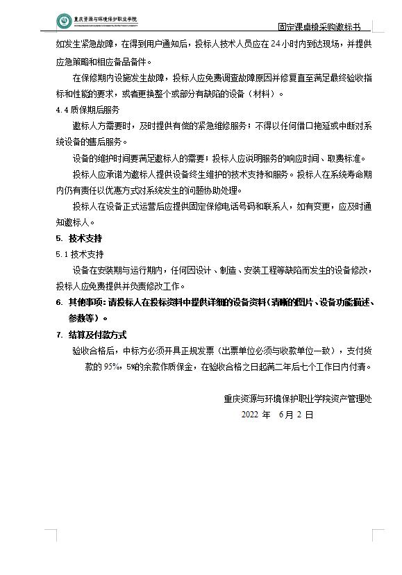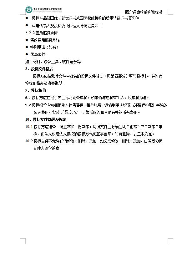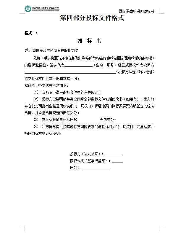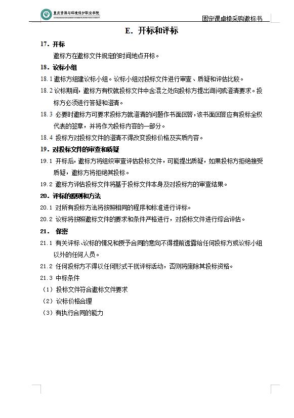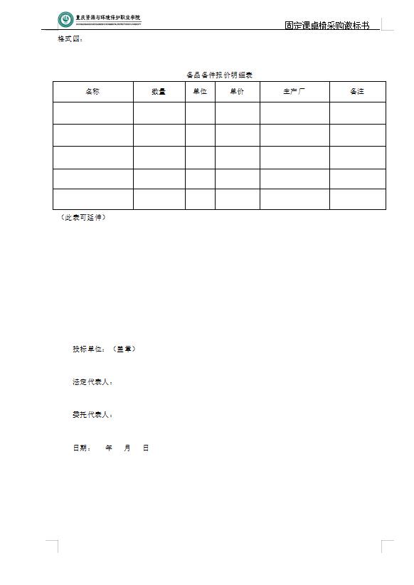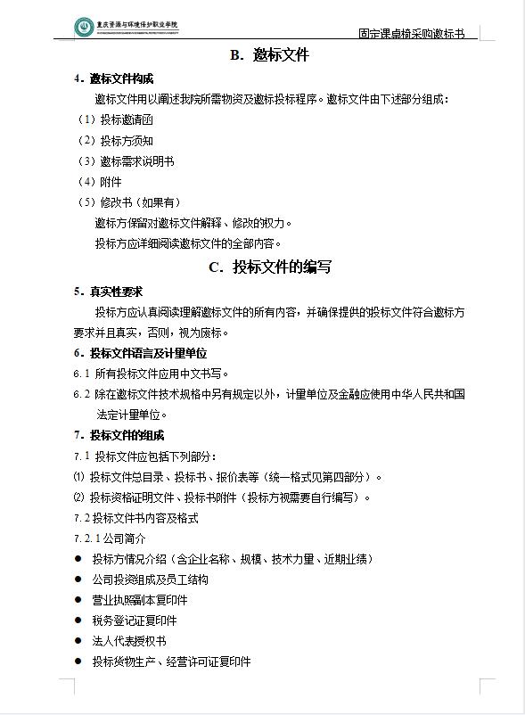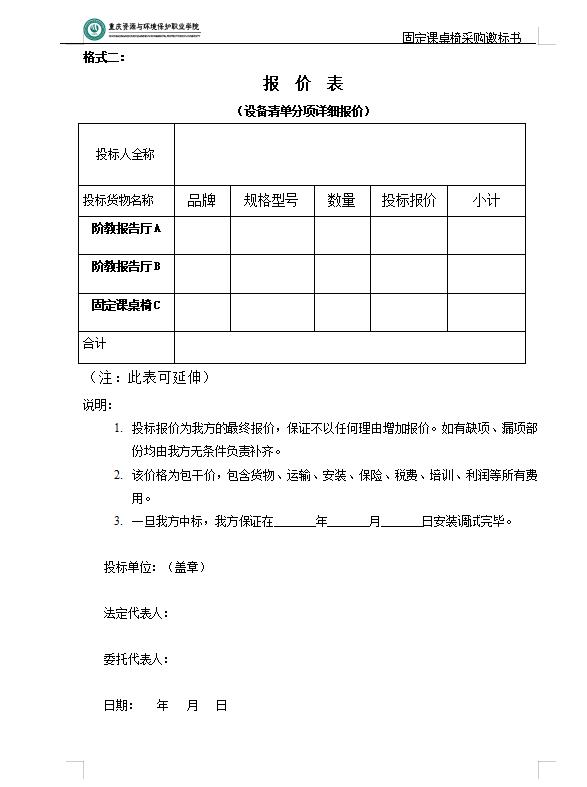 阶教报告厅桌椅及固定课桌椅采购邀标书