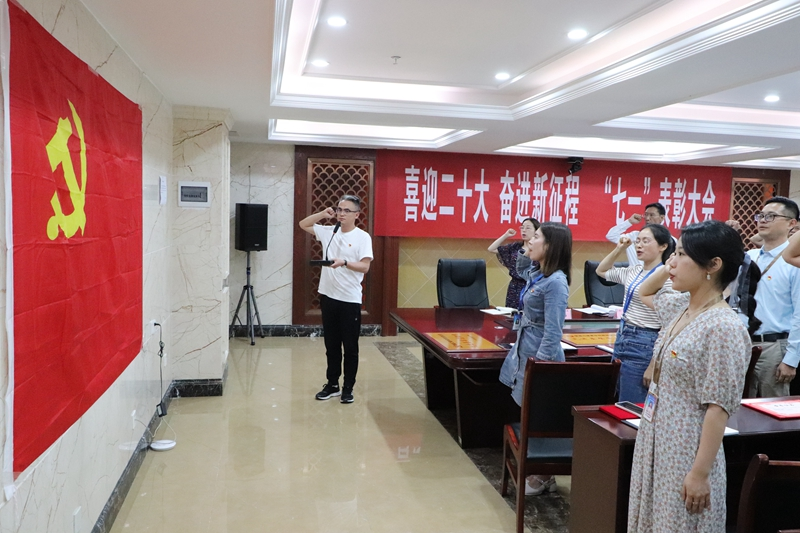 “我志愿加入中国共产党……”,常务副校长李朝国领誓,所有党员重温了入党誓词。