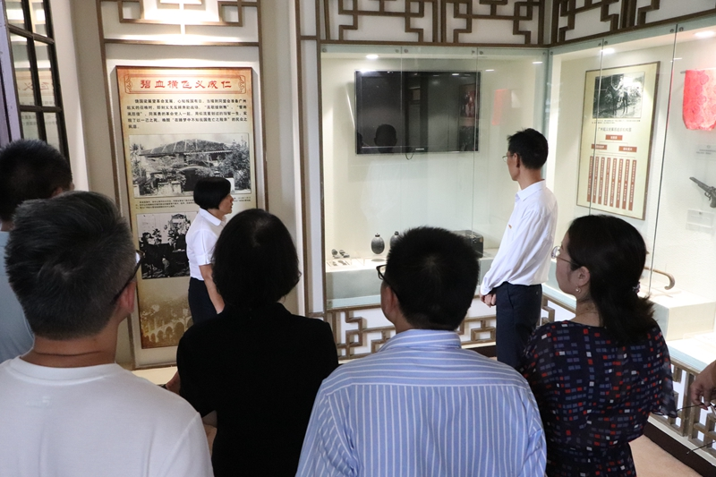 在实地研学中,党员干部认真聆听现场讲解,驻足观看诸多珍贵的文物实物、翔实的档案资料、生动的图片视频、逼真的复原景观,细细品味,多角度深入了解饶国梁烈士为寻找救国之路,投身民主革命的曲折经历,以及饶国梁烈士广州起义中伟大的革命精神和饶国梁的胞妹饶国模在重庆创办大有农场并无偿捐献给八路军的事迹等,并无不为革命前辈在极其艰苦的条件下,始终保持初心,与敌人英勇斗争的革命事迹而深深感动。