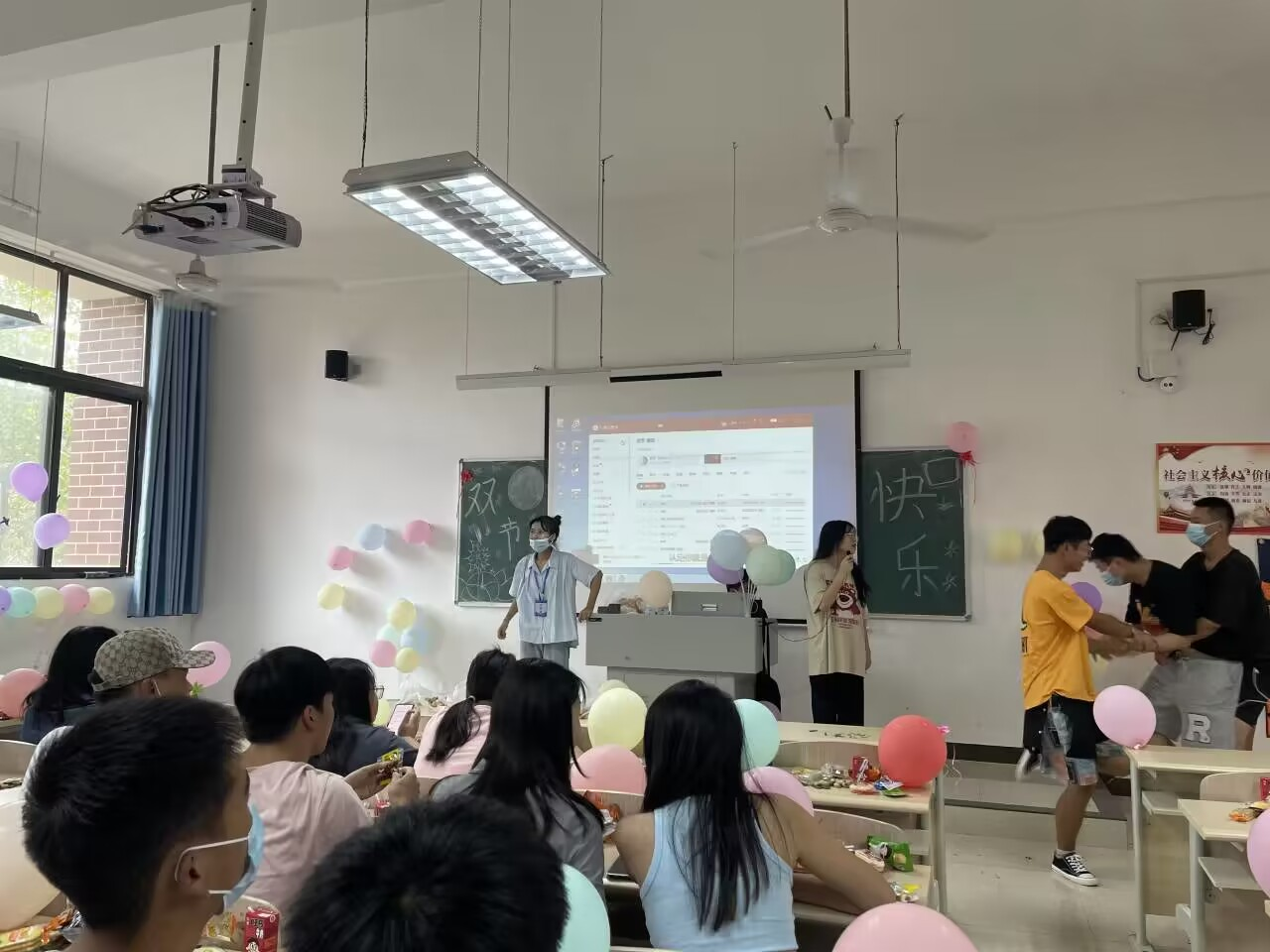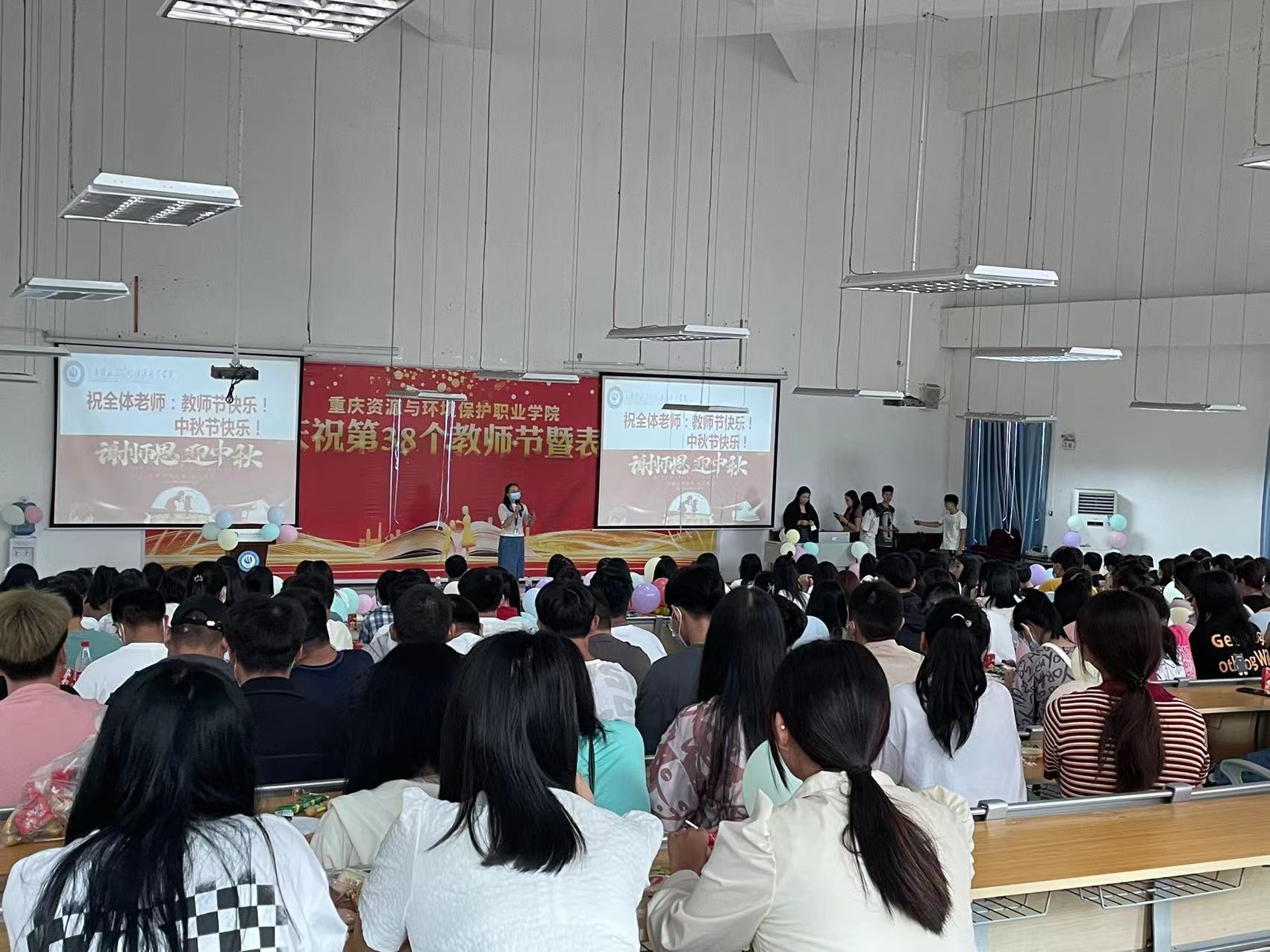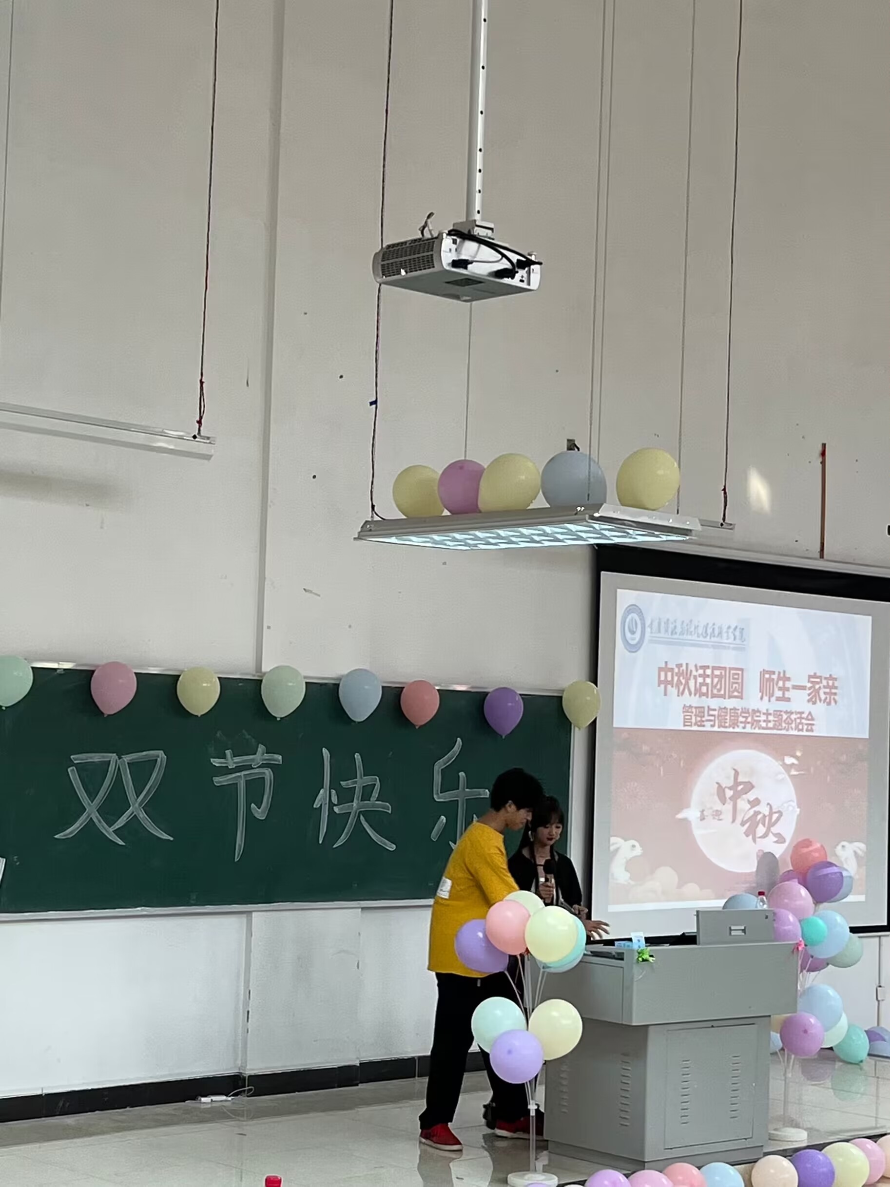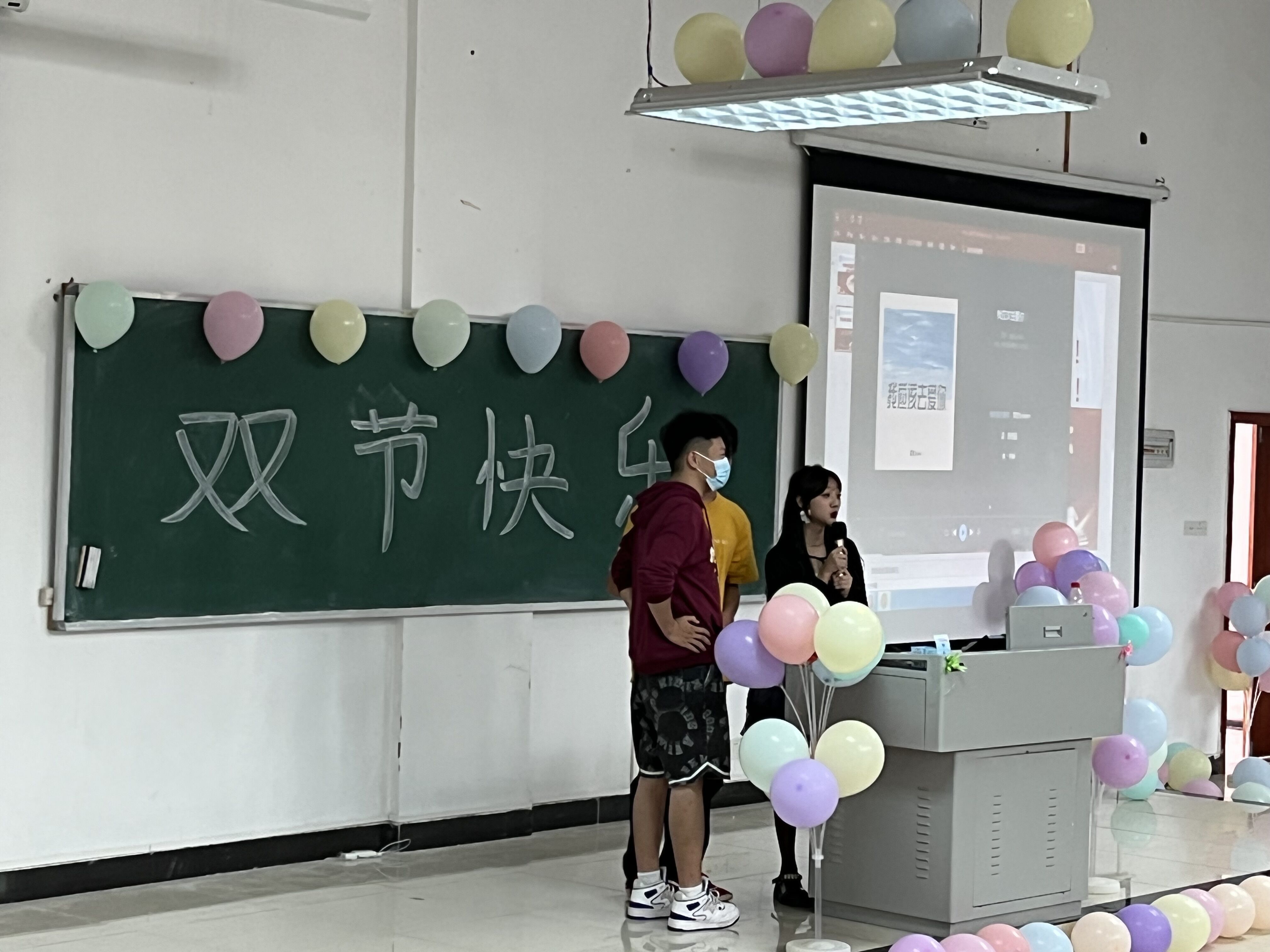 2022年9月10日中秋节与教师节重合,传统与现代相遇,感恩与思念同在。又是一年中秋佳节,管健学子即使不回家,在校过中秋节也过得有仪式感。为了让他们感受到学校的温暖和老师的关怀,9月10日下午4:00我院在教学楼分四个活动会场开展“情暖中秋节 感恩教师节”主题活动。学校值班校领导胡勇刚、学生处副处长王楚勇到场关心慰问同学、管理与健康学院党总支副书记罗晓兰、辅导员周晓琴、胡攀及在校学生约550余人参加了此次“双节”活动。