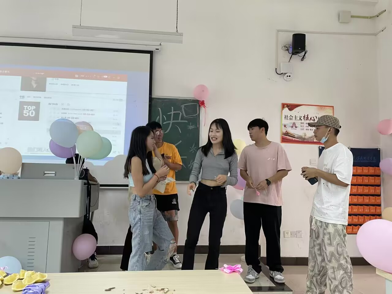 活动伊始,同学们集体向全校教师送祝福,祝全体老师节日快乐。罗晓兰副书记言简意赅地给同学们送上节日祝福。各分会场在主持人带领下,以唱歌、自我介绍、脱口秀、弹唱等形式各不同的热身环节拉开序幕。在一阵阵欢声笑语中,同学们从陌生到认识,进而积极互动,从最开始的观众到活跃分子,把整个活动气氛拉得满满的。最有趣的要属游戏互动环节,有的班级组织了猜数字游戏,在猜数字游戏中,同学们是又惊又喜,因为谁“中招”了是有惩罚的;有的班级是你画我猜,有绘画功底的学生主动上台在黑板上画出“一箭穿心”“小鸟依人”“花好月圆”等成语,大家在头脑风暴中抢答,一片欢乐场景。通过游戏,大家彼此更加熟悉、也更加热爱管健这个大家庭。