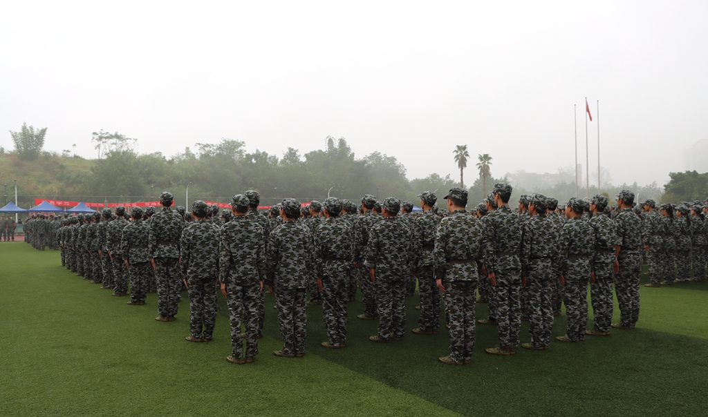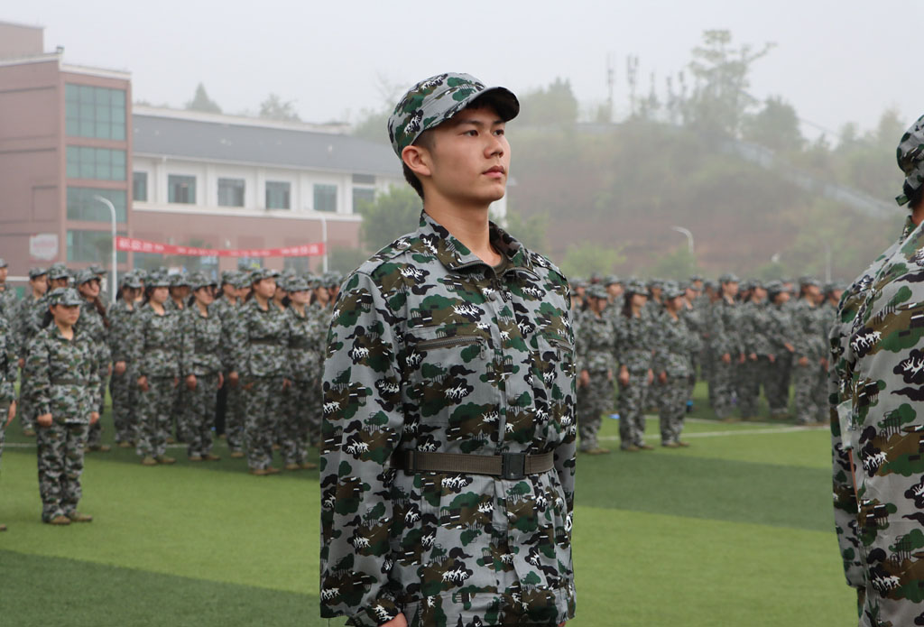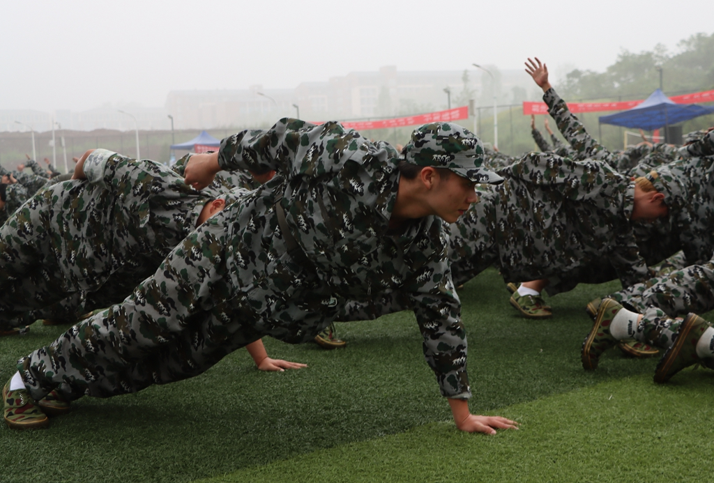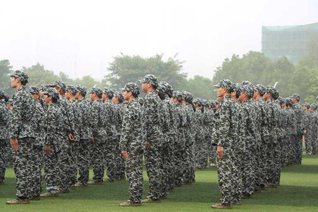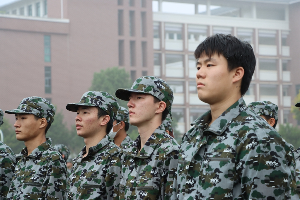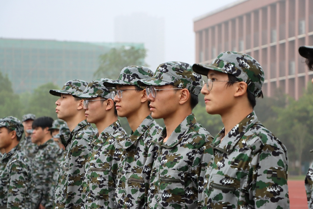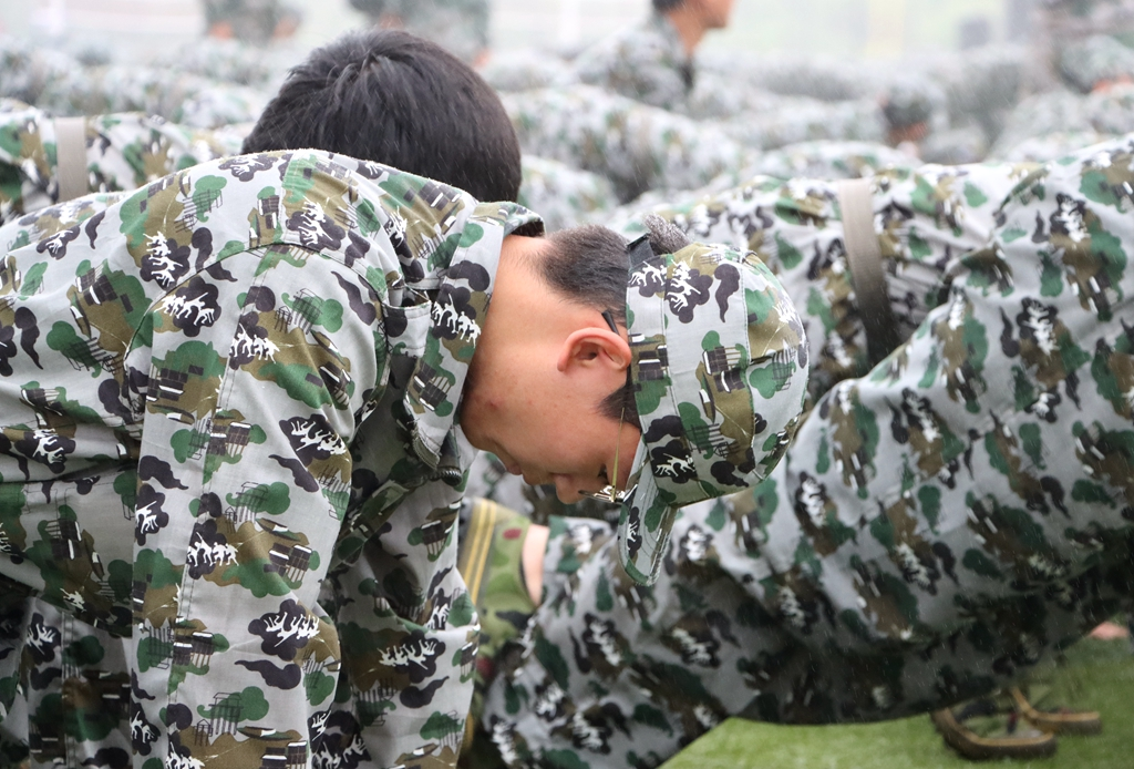 晓风飒飒,细雨霏霏,朦胧的睡意被扑面而来的清爽打散,在醺然的凉意里,习习凉风夹杂着绵绵细雨,缺少了烈日的军训会不会别有一番风味呢?同学们和教官屹立在雨中,任凭雨水打湿衣衫,体验着军人的那一份责任与担当!感谢雨天辛苦训练的教官们。