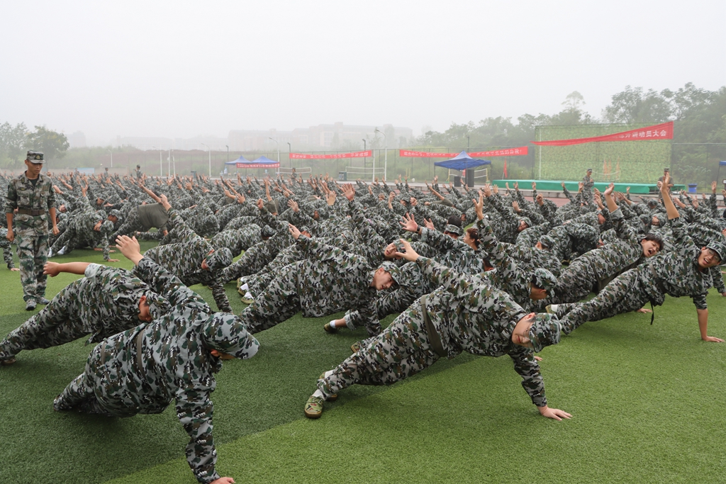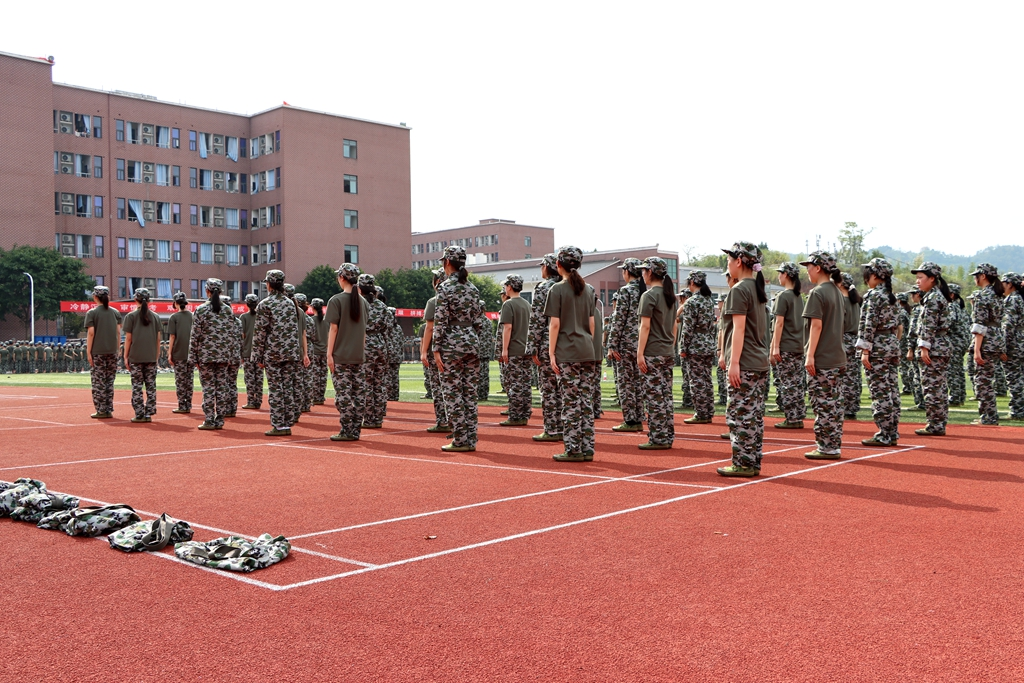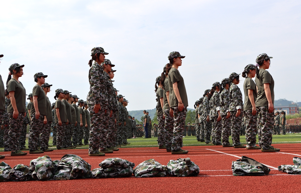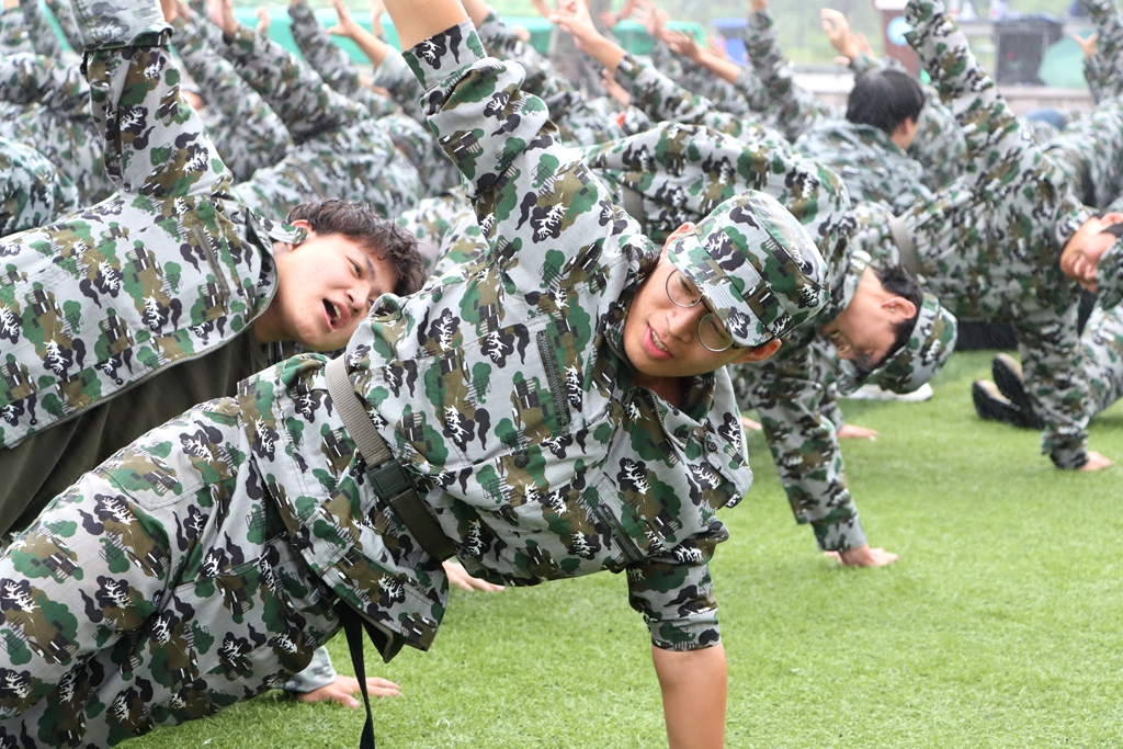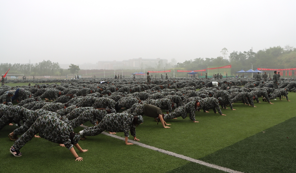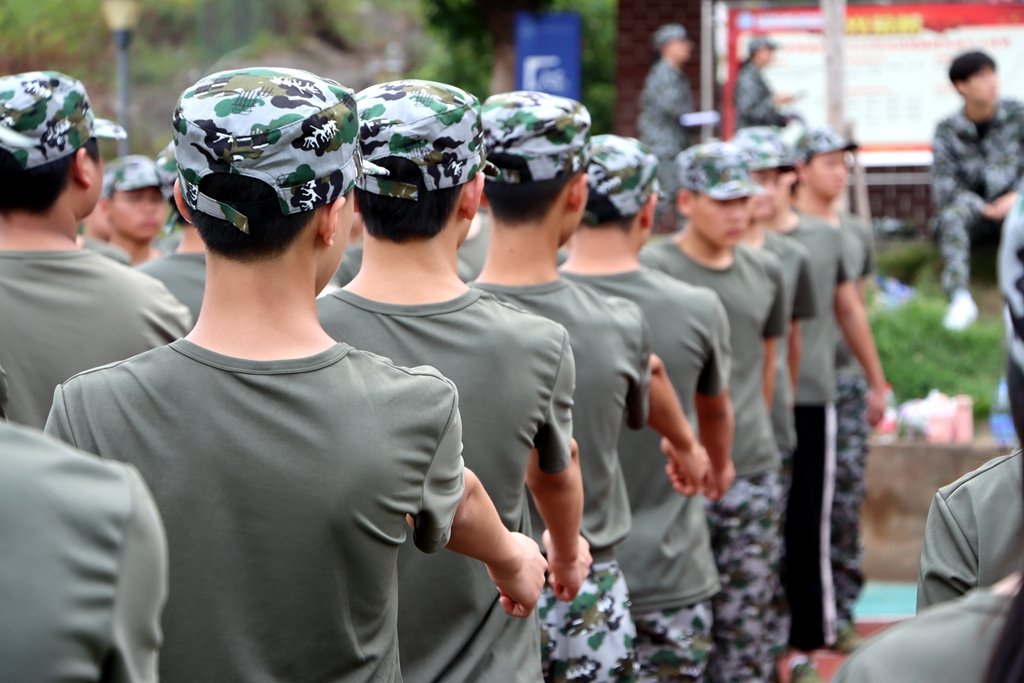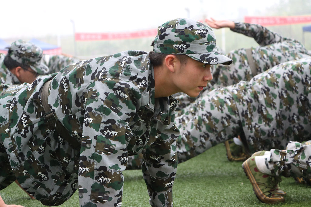 晓风飒飒,细雨霏霏,朦胧的睡意被扑面而来的清爽打散,在醺然的凉意里,习习凉风夹杂着绵绵细雨,缺少了烈日的军训会不会别有一番风味呢?同学们和教官屹立在雨中,任凭雨水打湿衣衫,体验着军人的那一份责任与担当!感谢雨天辛苦训练的教官们。