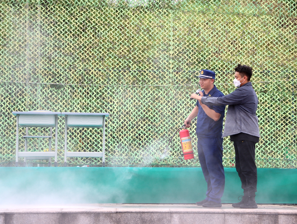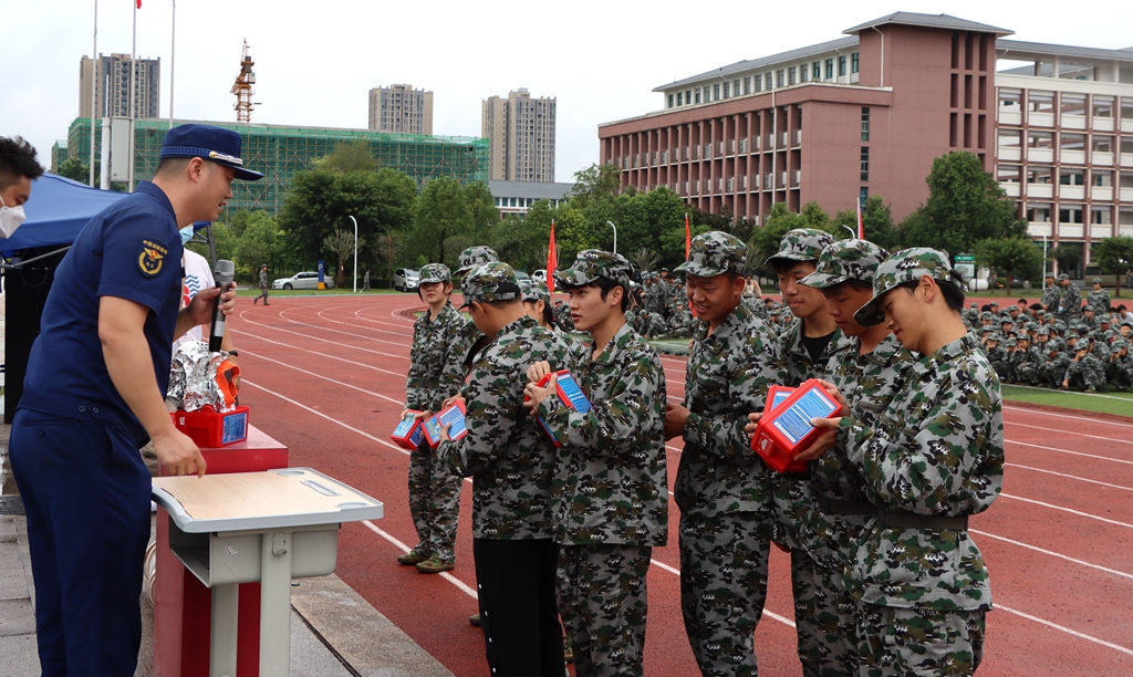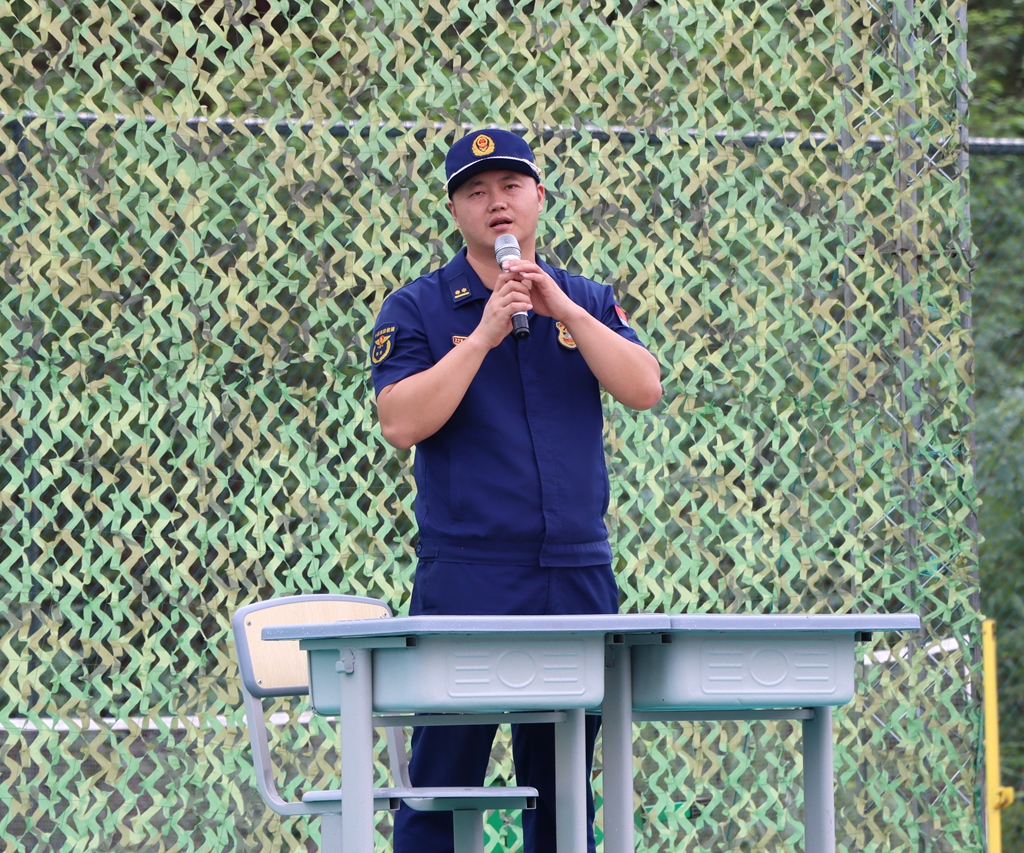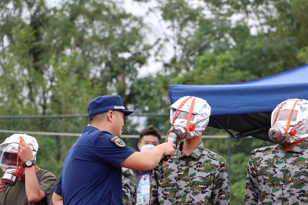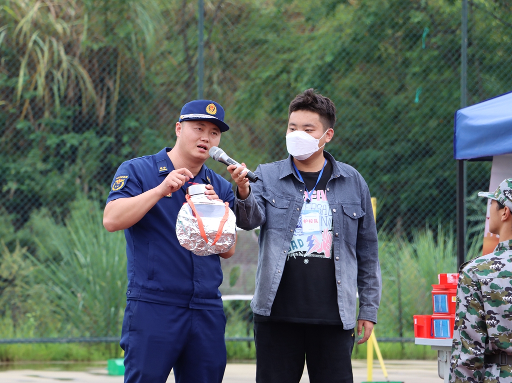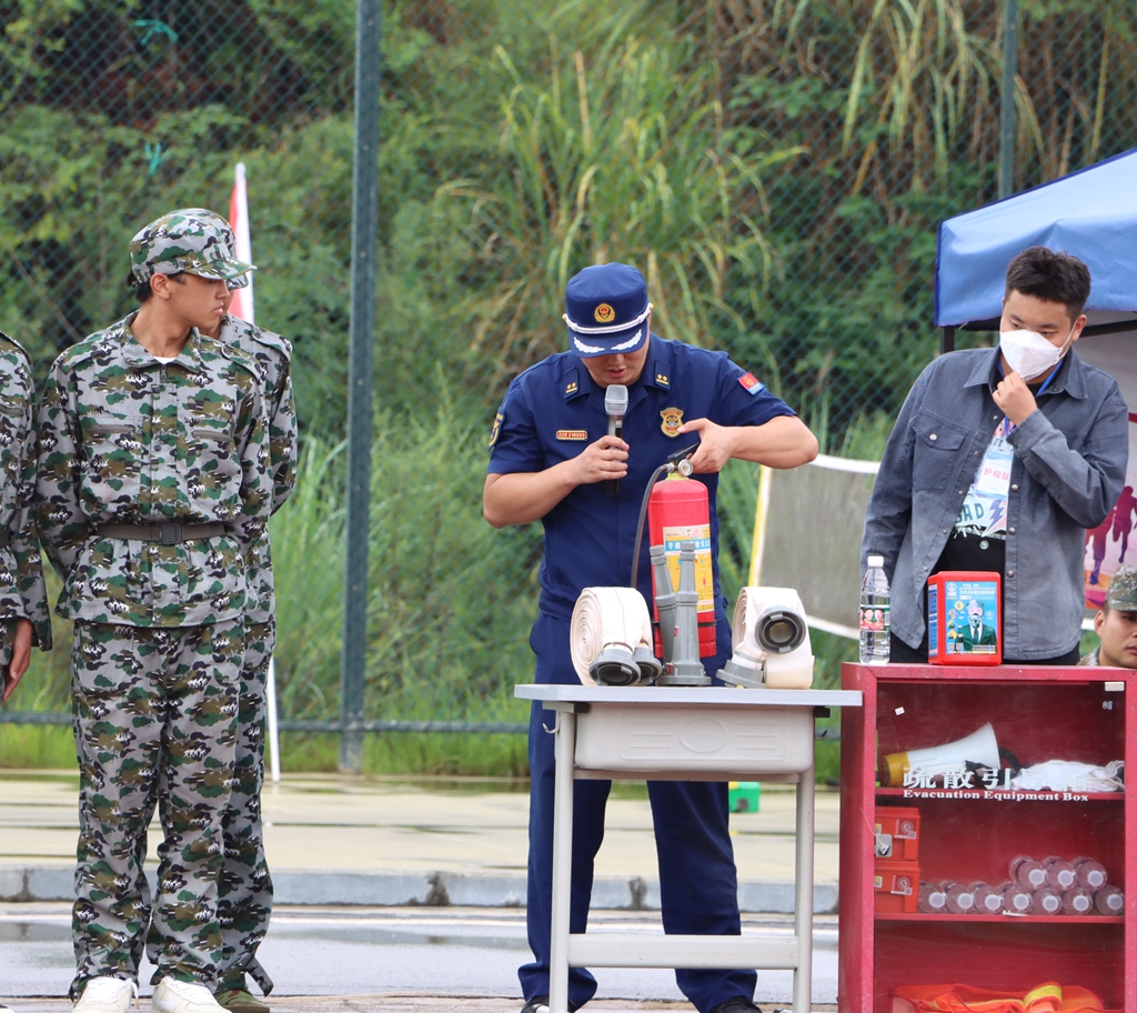 活动中,宣传人员指导学校师生们开展疏散逃生演练,在学校消防安全管理人员的引导下,全校师生有序逃生至指定地点。操场上,指战员为全体大一新生演示了真实火灾中如何快速有效灭火。随后结合校园火灾的特点,宣传人员用通俗易懂、贴近生活的语言向新生们阐述了校园消防安全的重要性,从典型案例入手系统全面地讲解了日常生活中火灾的正确扑救方法、如何正确拨打“119”火警电话报警、如何逃生自救以及干粉灭火器的使用等基本的消防知识,传授了初期火灾处置和火场逃生的方法和要点。为了增强新生们学习消防的趣味性,宣传人员组织新生亲身体验灭火防护服,详细讲解了灭火防护服的用途和适用场景,并邀请新生体验消防器材,增强学生了解消防、学习消防的热情。通过“手把手”指导,“面对面”讲解的方式,帮助新生掌握火场逃生技能要领,切实提升参训新生的“实战”能力。