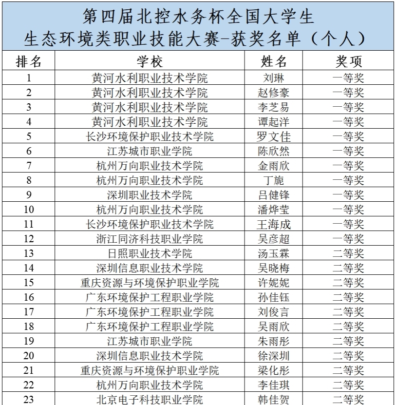 【喜报】我校在第四届“北控水务杯”全国大学生生态环境类职业技能大赛中喜获二等奖3个