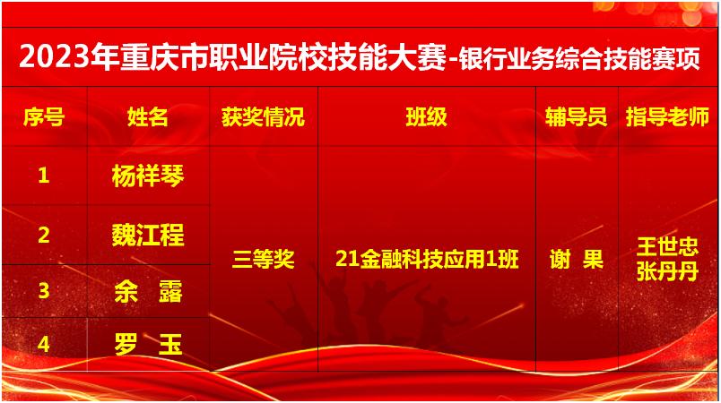【喜报】我院在2023年重庆市职业院校技能大赛-银行业务综合技能竞赛中获奖