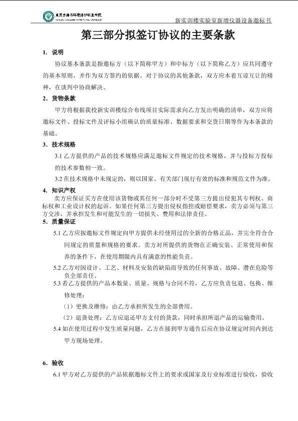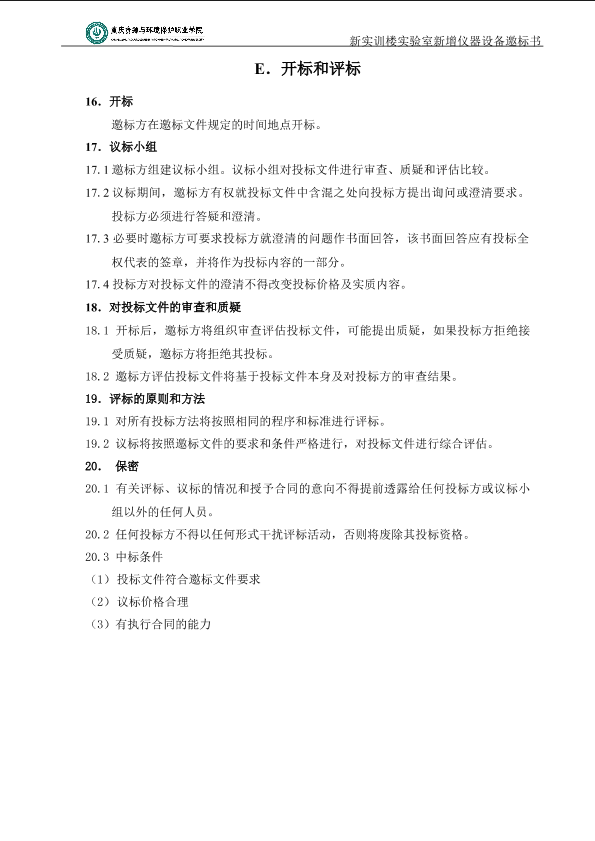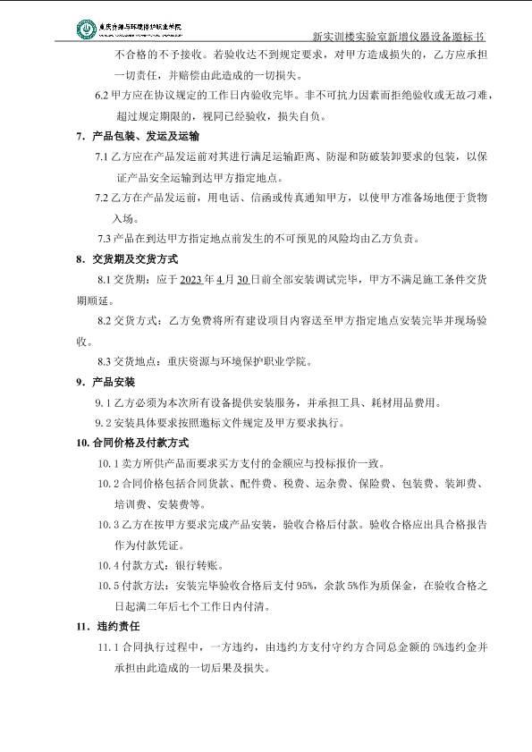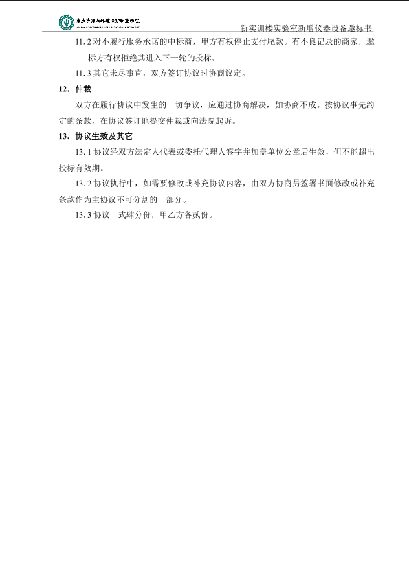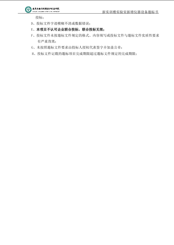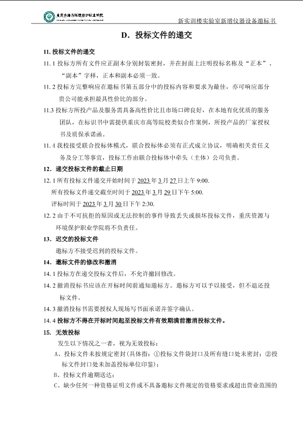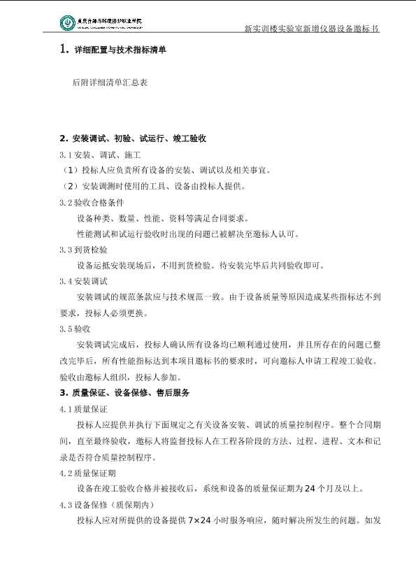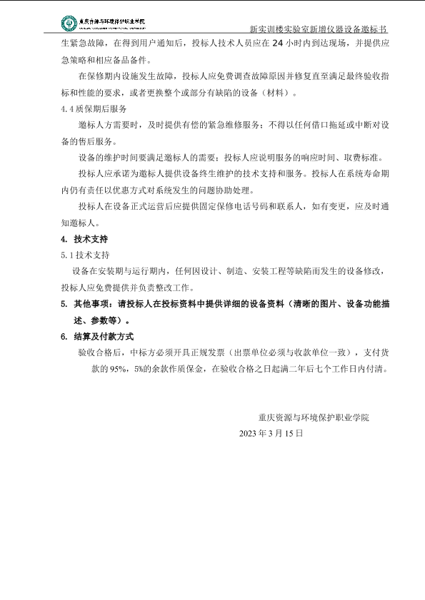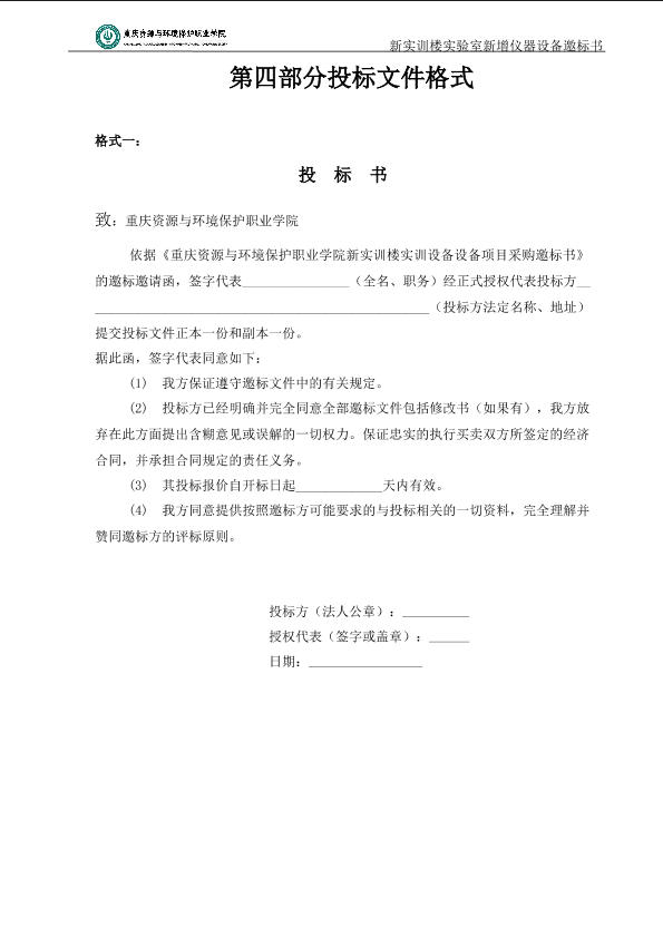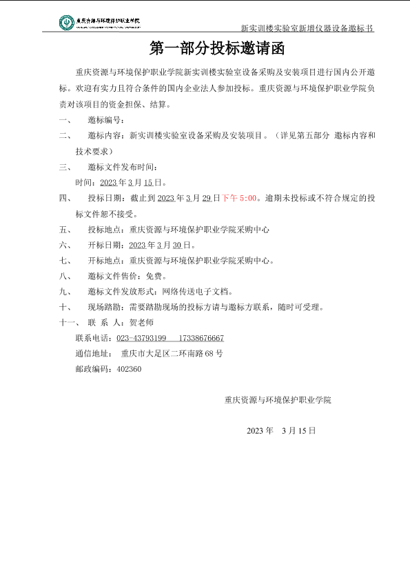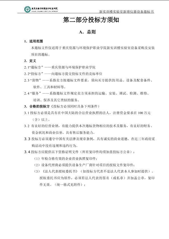 重庆资源与环境保护职业学院实验室新增仪器设备标书