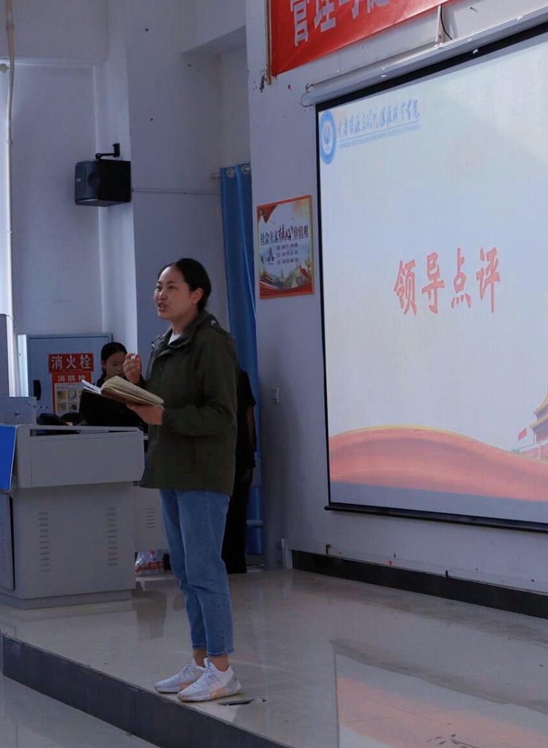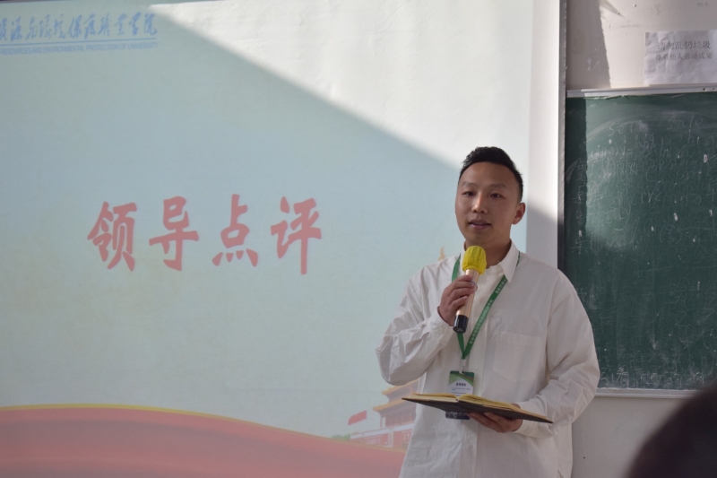 所有选手演讲结束后,管理与健康学院学生党支部书记胡亭老师、校团委谢鳅老师对本次活动做了专业的点评。他们分别对本次参赛选手的演讲内容、举止装着、舞台表现等进行全方位的点评,指出本次参赛选手的亮点与不足。