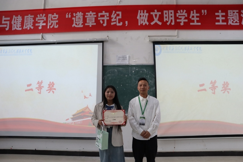 不以规矩,不成方圆。为深入学习贯彻党的二十大精神,进一步弘扬遵章守纪,做文明大学生的校园文化,激发全体同学的责任感和集体荣誉感,成为高素质的技术技能型人才。4月26日,管理与健康学院在S113教室开展了“遵章守纪,做文明学生”主题演讲比赛。