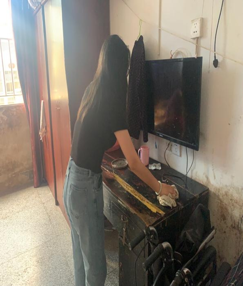 春日的阵阵凉意,却依然抵挡不住志愿者们满满的热情。同学们带着他们对社会公益活动的热忱的心来到了上朗养老服务院。他们帮老人打扫房间,为老人们打造出了家的温暖。