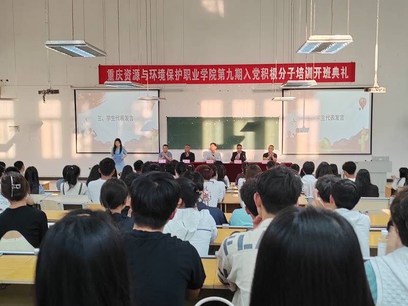 2023年4月11日晚,学校第九期入党积极分子培训班在教学楼J112举行开班仪式。学校党委书记陈远刚、学生处处长袁兵、生态环境学院党总支副书记周通、管理与健康学院党总支副书记赵茂森、通识学院与马克思主义学院党总支副书记唐茂杰出席。学院组织部工作人员和来自全校151名学员参加。开班仪式由组织部部长苟兴成主持。
