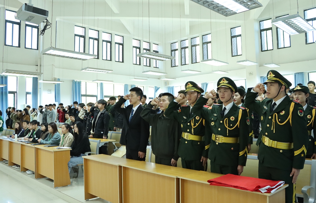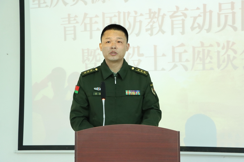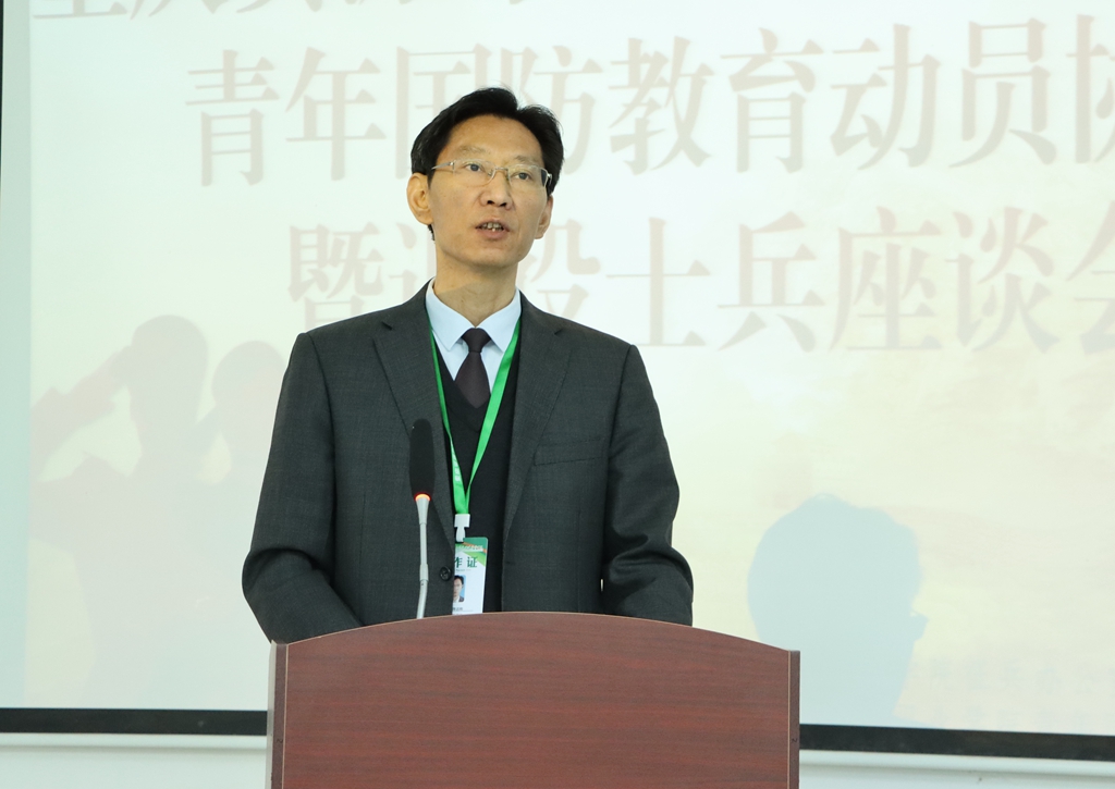 4月4日上午,重庆资源与环境保护职业学院青年国防教育动员协会成立暨退役士兵座谈会在J112教室隆重举行。大足区人武部副部长游斌上校,军事科杨德权参谋,重庆资源与环境保护职业学院党委书记陈远刚以及宣传部,学生处、校团委相关人员,各二级学院辅导员,入党积极分子代表、退役复学学生共计120余人参会。