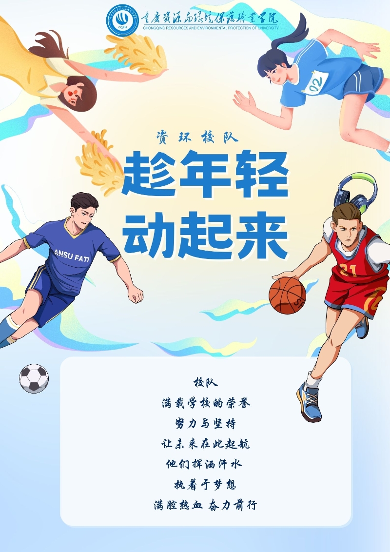 资环足球队组建于2019年。自组建以来,球队始终保持着朝气蓬勃、刻苦训练、团结进取、永不服输的精神风貌,秉承“顽强拼搏、持续超越”的球队作风,在2021年大足区教育委员会举办的校园足球联赛中取得了第三名的成绩,并获得体育道德风尚奖。球队在每周一和周三训练,在训练中注重队员基本身体素质与团队配合,在训练热身阶段督促队员进行简单的球性技术学习、增强队员的球感与个人技术,团队配合训练意在提高队员配合意识与阅读比赛能力,并定期组织各种形式的比赛,通过比赛检验训练效果,增强队员自信心。在之后的训练与比赛中,足球队仍会脚踏实地、刻苦拼搏,不辜负院校领导的期望。
