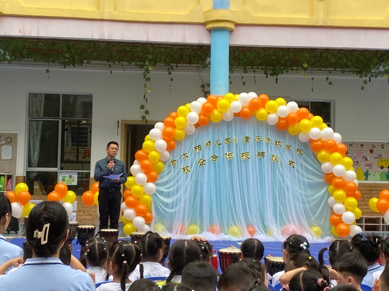 为进一步解决学生就业问题,加强校企合作,5月15日,我校与重庆市大足区金太阳幼儿园在金太阳幼儿园举行校企合作就业实习基地授牌仪式。金太阳幼儿园董事长江晓泉、园长梁玲,学校副校长常成国、教育与体育学院院长骆真波、学前教育教研室主任、辅导员代表出席仪式,幼儿园全体师生参加仪式。