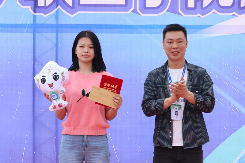 我校师生在参加重庆市级大学生篮球赛、健美操比赛、大学生田径比赛分别取得了优异的成绩,副校长胡强、副校长喻帮梅代表学校对获奖团队和个人颁奖。