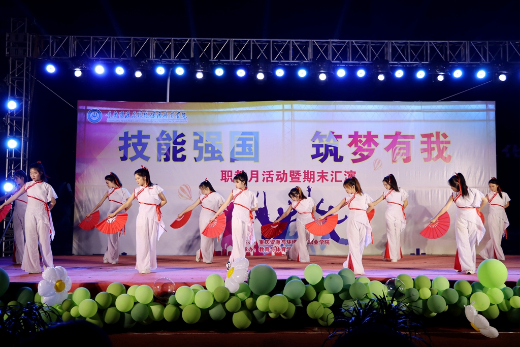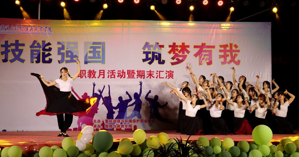 为贯彻落实全国职业教育大会精神,践行新职业教育法精神,大力弘扬技能宝贵的时代风尚,宣传劳模精神、劳动精神、工匠精神,重庆资源与环境保护职业学院教育与体育学院积极开展以“技能强国,筑梦有我”为主题的职业教育活动,并于24日晚在运动会场与办公楼一楼进行演出和作品展示。
