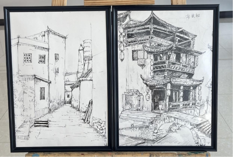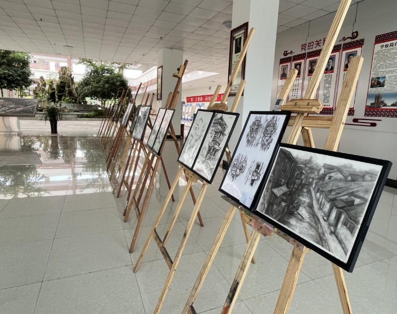 此外,办公楼一楼布置了美术期末展区和外出写生成果展区,分别是学前教育、婴幼儿托育服务与管理和环境艺术专业学生作品,在源自生活、自然的基础上再次艺术创造,绘出青春浓墨重彩的一笔。
