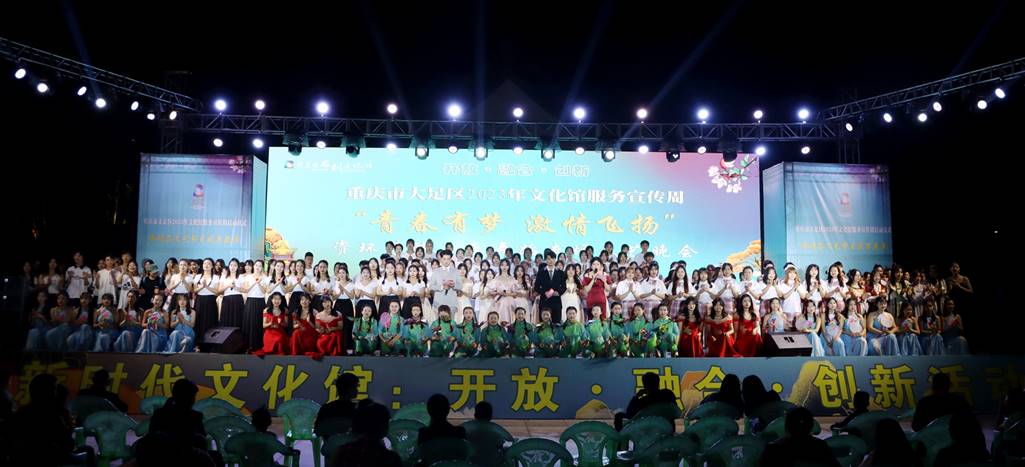 本场文艺晚会是重庆市大足区2023年文化馆服务宣传周活动系列之一,由重庆资源与环境保护职业学院学生进行表演,演员200余人,共有《中华手拉手》《西楼别序》《骁》《山羊踩痛小公鸡》等十九个节目。通过线下活动和线上直播的形式进行,现场观众座无虚席,线上直播观看人数达20余万。以《中华手拉手》热情舞蹈开场,新疆舞、啦啦操、爵士舞、歌伴舞、古筝演奏、钢琴演奏等艺术形式交辉相应,台上演出多姿多彩,台下观众全情投入,只见他们时而侧耳倾听、时而掌声雷动,热闹非凡、叫好声、掌声不绝于耳。