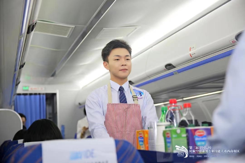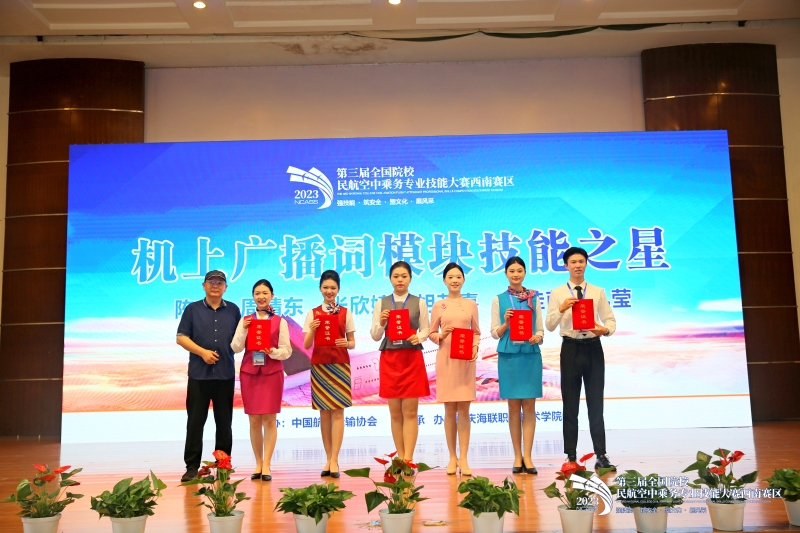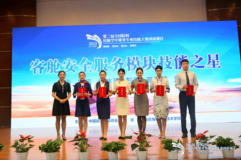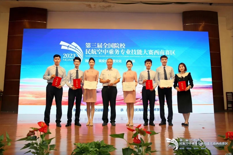 2023年6月11日,我校城市轨道交通运营管理专业(高铁乘务方向)的学生,在参加“第三届全国院校民航空中乘务专业技能大赛西南赛区”比赛中斩获佳绩。本次大赛由中国航空运输协会主办,西南赛区复赛由重庆海联职业技术学院承办,以“教育部1+X民航空中服务职业技能等级证书标准”为考核内容,设置了理论知识考核、客舱安全服务考核、机上广播词考核、机上应急设备考核、机上应急医疗实操考核五大板块,重点考察客舱安全与服务技能的综合运用情况。