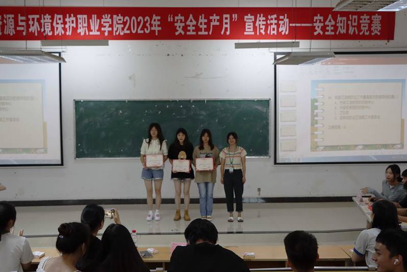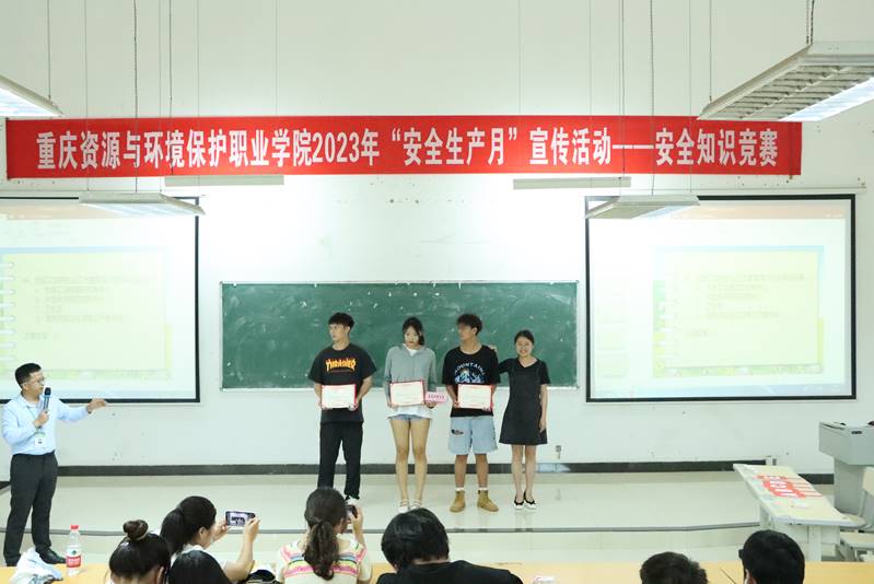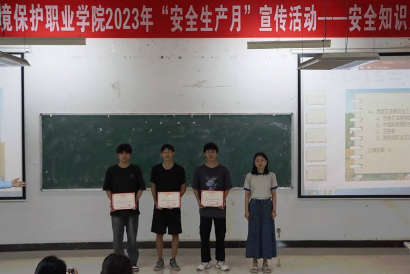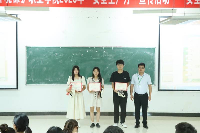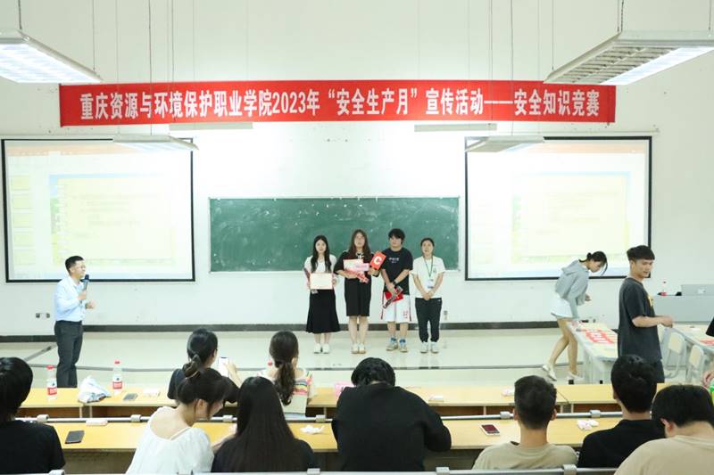 各二级学院经过多轮选拔,筛选出3名精英学生代表共计15名同学参加决赛,每一位参赛选手都精神饱满,充分的展现了自己的安全储备知识,让同学们学习到了各类安全知识。通过激烈的比赛最终教育与体育学院获一等奖,智能工程学院获二等奖,生态环境学院获三等奖。