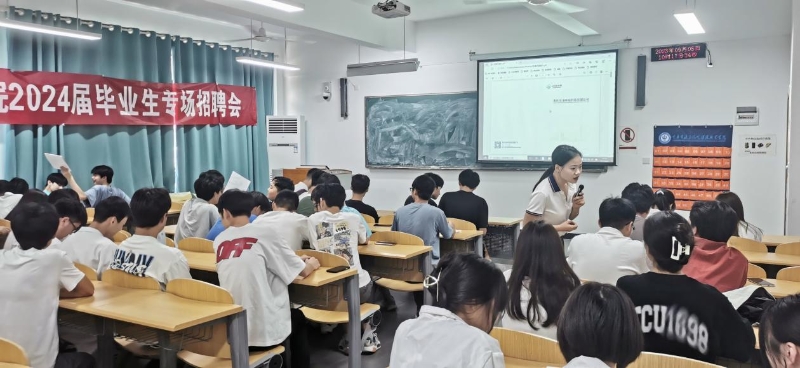 为做好我校2024届毕业生就业工作,助力我校学生高质量就业,9月5日上午,就业指导中心在新教学楼112教室举办2024届毕业生专场招聘会。此次专场招聘会面向生态环境学院学生开展,由就业指导中心主任温秋月主持。