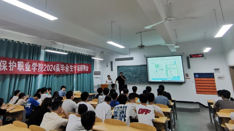 招聘会现场,重庆乐谦环境科技有限公司陈元强总经理详细地介绍了公司发展现状以及高校应聘大学生培训方案,为我校学生指明了生态行业当前的就业方向和途径。