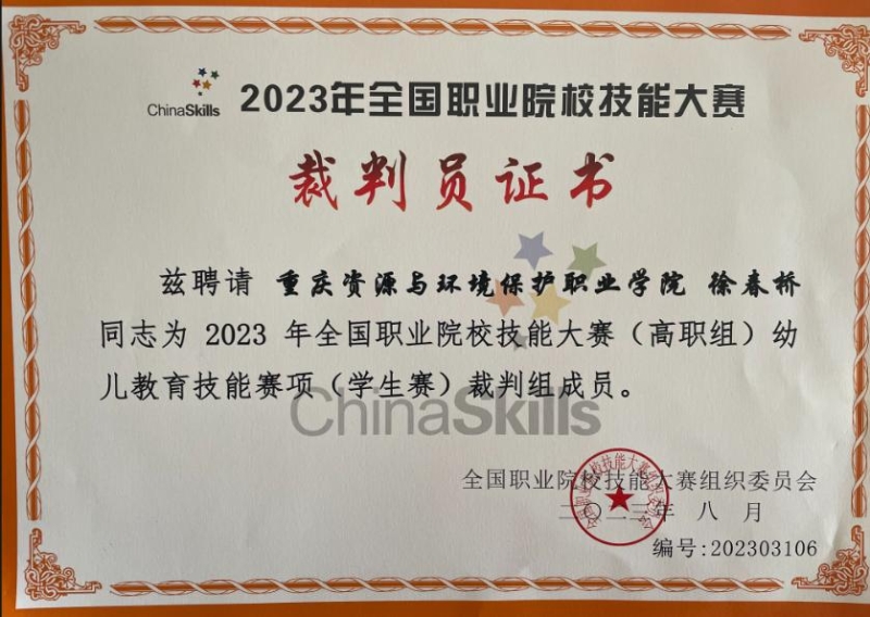 全国职业院校技能大赛是由教育部牵头主办的目前规模最大、影响力最广、技能水平最高的全国性、综合性职业院校技能大赛。大赛裁判员是面向全国公开征集遴选的具有行业影响力和社会认可度、专业技能强、职业道德高的专家,需具备审核的专业知识和丰富的执裁经验。幼儿教育技能主要考核幼儿教师模拟教学、综合素养测评、教学活动设计3个项目,主要考察选手教师综合素养和岗位适应能力。