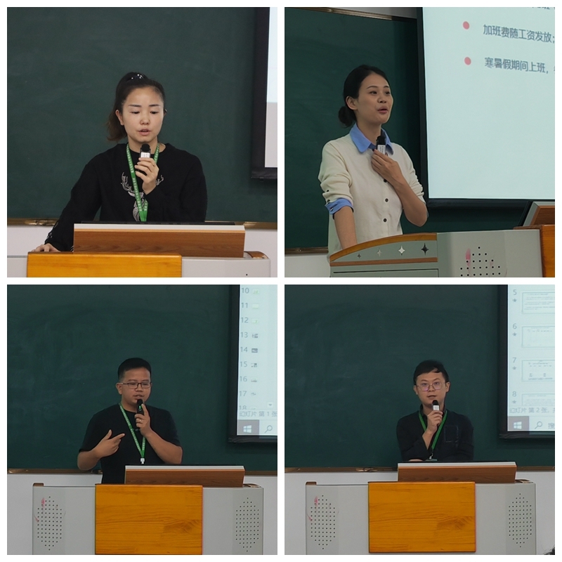 财务处处长黄付艳就学校财务报销流程为大家进行了讲解;人事处处长汪洋以“加强师资队伍建设,优化人才队伍结构”为出发点,为新教师更快融入学校,践行教师职业行为规范,促进人力资源的合理配置夯实基础;保卫科科长吴永波以“2023年新同事入职安全交流”为题,与新入职教师们展开交流,并以自身多年校园安全管理的经验与大家分享,希望大家要提升防范意识,更好地教育、管理学生;后勤处饶廉松干事分享了我校“智慧资环”APP使用方法及办公资产的使用管理办法。