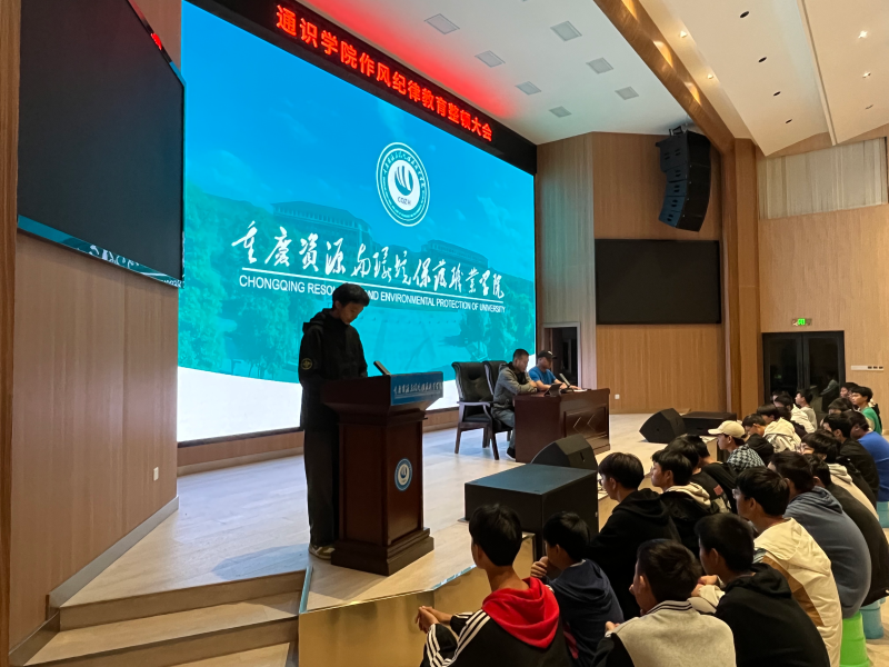 通识学院于10月10日晚上召开了作风纪律教育整顿大会,旨在引导学生养成文明习惯、浓厚学习风气、维护良好秩序、创造优美的校园环境。大会由唐茂杰书记主持,赵智斌院长主讲,部分辅导员和2023级 300余名新生参加。