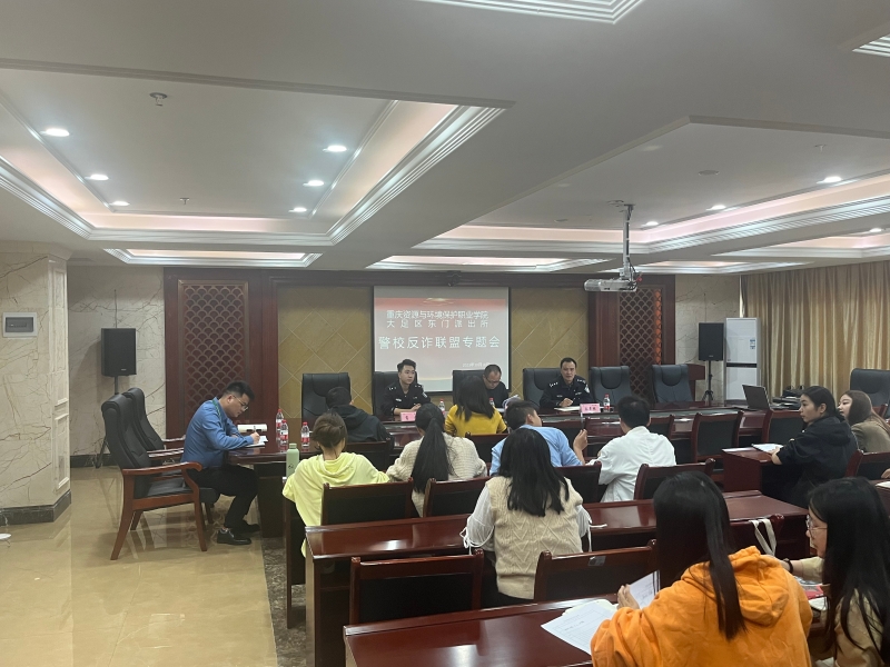 为有效保护好全体师生利益,全力守护好师生的“钱袋子”,10月18日下午,我校邀请大足区东门派出所教导员秦章栋、副所长肖鹏到校指导反诈工作。学校副校长胡强、保卫处、学生处工作人员及全体辅导员参会。