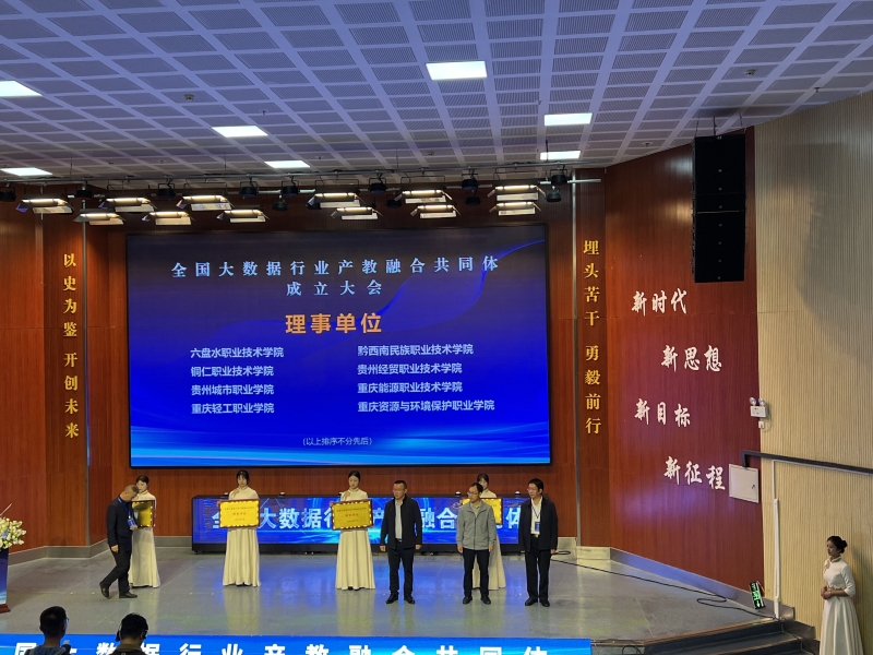 近日,全国大数据行业产教融合共同体成立大会暨第一届理事会全体会议在贵阳拉开帷幕,220余家涵盖了院校、相关企业、行业协会、科研机构等类型的共同体成员单位代表出席会议。我校当选为全国大数据行业产教融合共同体理事单位,智能工程学院唐国坪院长受邀参加了本次大会,并代表重庆资源与环境保护职业学院接受了理事单位授牌。