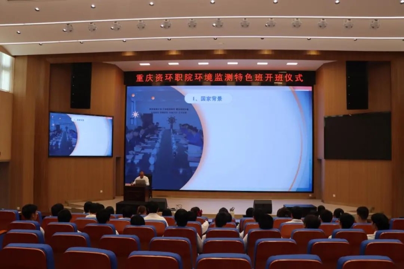 10月13日下午,环境监测特色班开班仪式在学术报告厅举行。学校校长李子存、教务处处长王琴香、生态环境学院院长陈勇、院长助理罗丹、大足区生态环境监测站站长陈学、副站长路媛媛、副站长金春义,以及特色班全体学生和相关教师参加了开班仪式。
