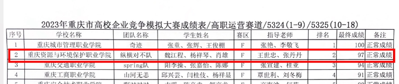 2023年12月1日至2日,由重庆市教育委员会主办,西南政法大学承办的重庆市高校企业竞争模拟大赛顺利举行。本次大赛共有来自全市30余所高校近130支队参赛。我校两支参赛队伍、6名参赛选手凭借扎实的专业技能、敏锐的市场洞察能力和出色的团队协作,一路披荆斩棘,最终脱颖而出,取得市级高职组一等奖一项、三等奖一项的好成绩。