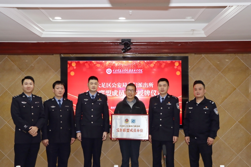 会议最后,东门派出所向重庆资源与环境保护职业学院正式授予“反诈联盟成员单位”牌匾。