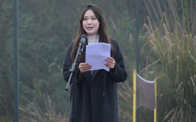 学生代表朱姝凝上台发言,她表示,新的学期就是新的起点,每一个人都有无限的潜能,唯有“砥砺前行,追逐梦想,超越自我”才能够发挥自己最大的潜能,最终成就自我。奋斗是青春最亮丽的底色,行动是青年最有效的磨砺,希望新学期每一位同学都能为了梦想而努力奋斗!没有长篇大论,无需华丽辞藻,当少年目光追随着国旗攀升的方向,便是最好的开学第一课。此刻,晨光正好,我们顶峰相见!