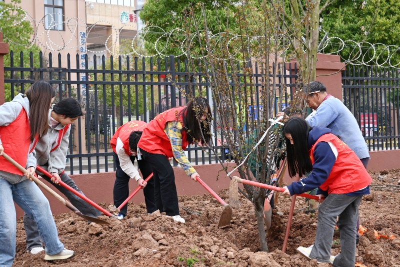 “坑要挖深,土要压实,水要浇透!” 活动现场,后勤绿化师傅化身“技术指导”,志愿者们分工协作,干劲十足: