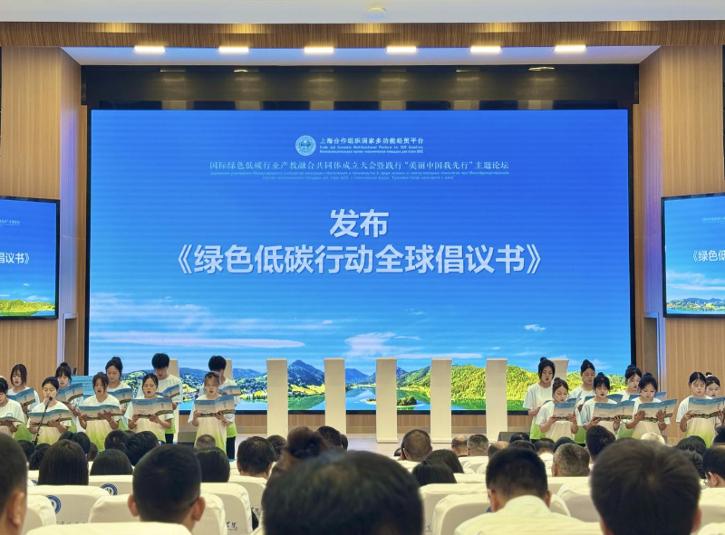 上海合作组织国家多功能经贸平台(以下简称平台)总干事、重庆市政协港澳台侨和外事委员会副主任胡开强为共同体授牌。来自会员院校的30位学生代表上台发布《绿色低碳行动全球倡议书》。平台总干事胡开强作总结发言,指出共同体的成立是落实人类命运共同体理念的实体行动,将创建绿色低碳行业产教融合的国际范式。
