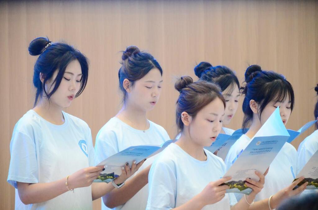 “以点滴行动守护人类共同的地球家园,用绿色低碳方式书写人与自然和谐共生的美好未来。”30名学生代表齐声朗读《绿色低碳行动全球倡议书》,呼吁从调节空调温度、推行无纸化办公等点滴行动守护地球。