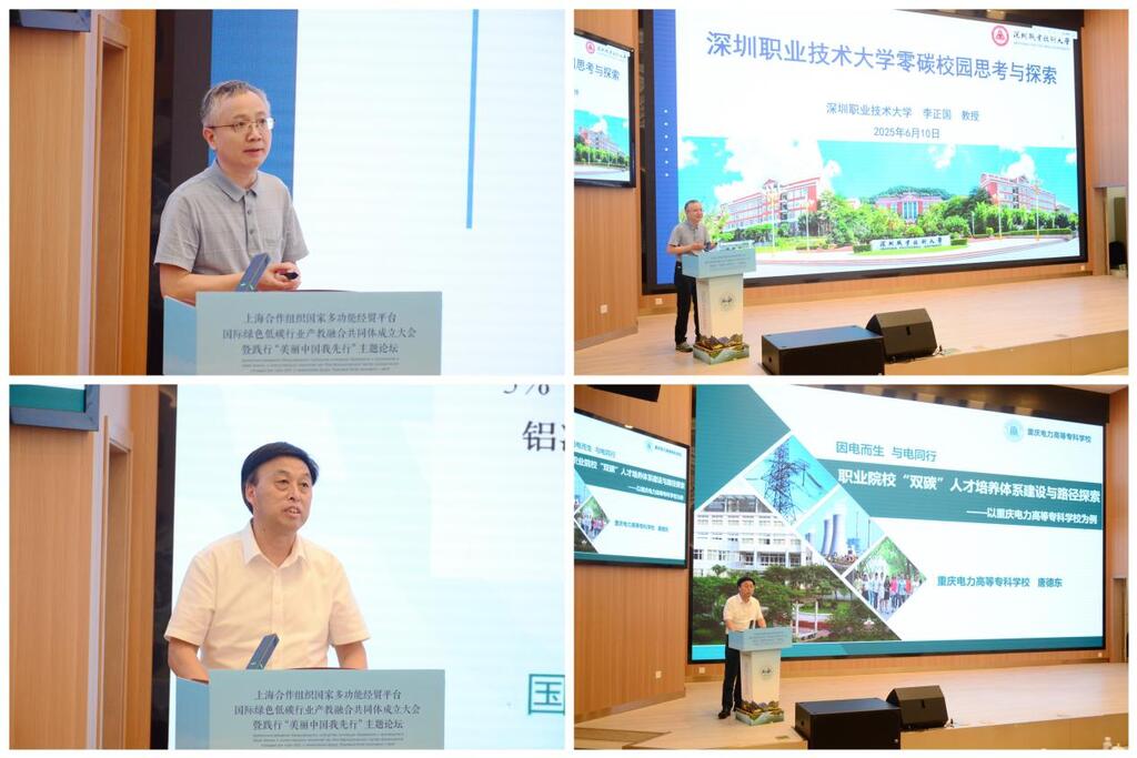 同济大学教授谭洪卫聚焦高校低碳化进程,强调需建立校园碳排放核算平台;深圳职业技术大学李正国分享产教融合实践经验;重庆电力高专校长唐德东则剖析职业院校双碳人才培养体系,指出需贯通“专业链与产业链”。