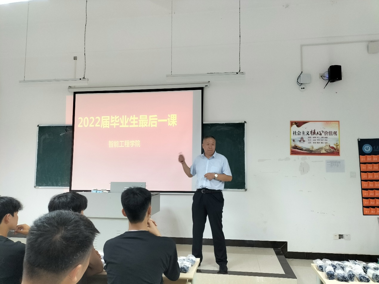 又是一年枙子花开,又是一年毕业际时。我校2022届毕业生6月27日圆满完成实习任务,返校办理毕业手续,智能工程学院党总支用心用情为毕业生上毕业前最后一课。学院党总支书记(院长)褚玉峰,走上讲台为同学们上“2022届毕业生最后一课”。他讲到新修订的职业教育法,以法律的形式明确了职业教育的性质与定位,为职业院校的毕业生发展提供了法律保障,职业教育前途广阔,大有可为。要求同学们要充分认清今年的就业形势
