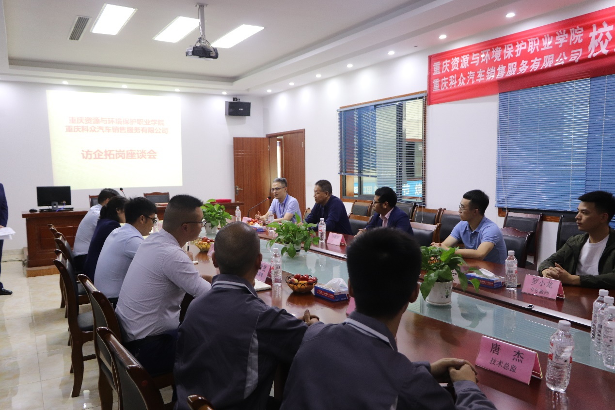 为了贯彻新的《职业教育法》,进一步深化产教融合、校企合作,提高人才培养质量,实现学生更充分更高质量就业。5月27日,我校常务副校长李朝国带领智能工程学院院长、主任、专业教师一行五人来到大足区的重庆科众汽车销售有限公司访企拓岗,并与该企业签订了校企合作协议。在访企拓岗暨校企合作签约的会议上,重庆科众汽车销售有限公司董事长刘春麟在致辞中讲到,科众汽车公司是大足区一家有20多年发展历史的民营企业,目前