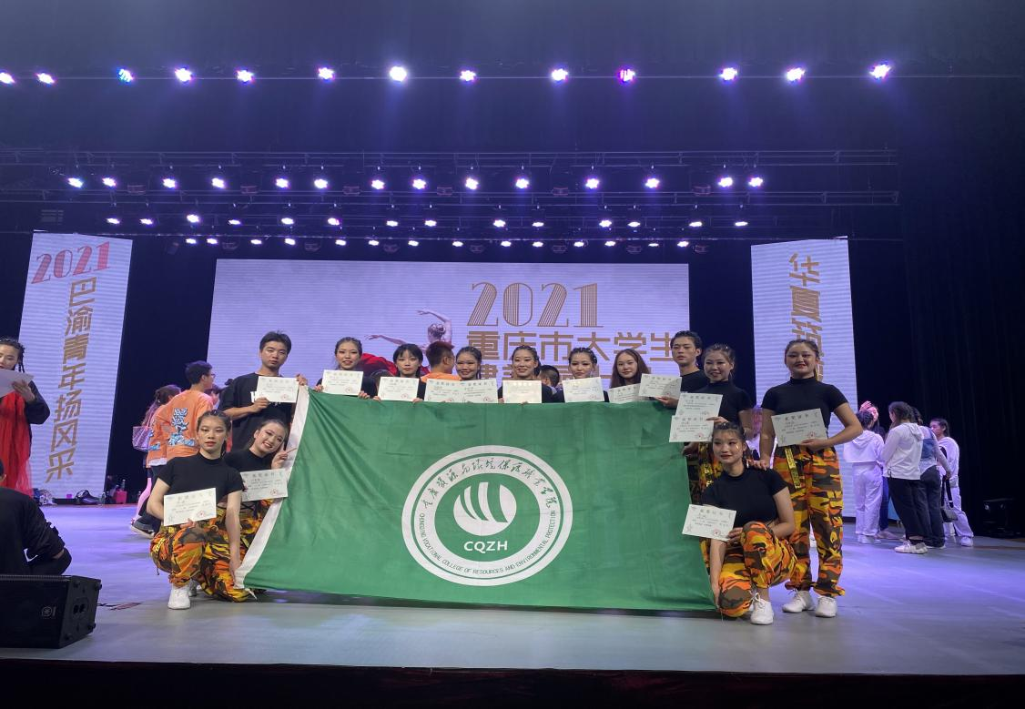 2021年5月19日重庆市教育委员会主办的2021重庆市大学生健美操比赛在四川外国语大学大礼堂拉开序幕。我校为了丰富大学生的课余生活,提高大学生的综合素质,增强团队精神和凝聚力,展现学生积极向上的风貌,精心准备,认真排练,踊跃参加本次健美操比赛。本次比赛共有33所高校586名运动员参加,包含竞技健美操自编动作、啦啦操和排舞三部分内容。我校学生每日在操场严格的练习,挥洒辛勤的汗水,从最开始的手忙脚
